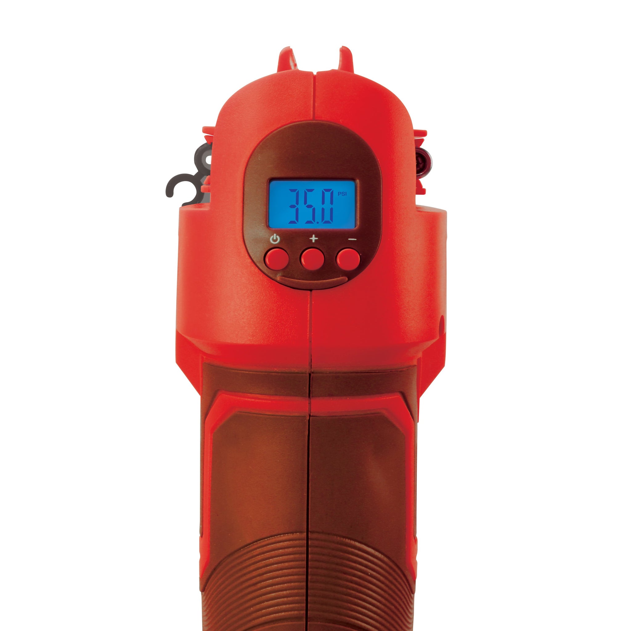 Compact and convenient for camping, or commuting - it’s the power-packed rechargeable pump that’s perfect anywhere power is at a premium -- like at the park, at the pool, or on the road. Keep tires at the perfect pressure, inflate a bike tire, pool float or sport ball in seconds. Simply set the PSI on the digital display and pull the trigger. The 24V-AJC-LTE automatically stops at your preset pressure.