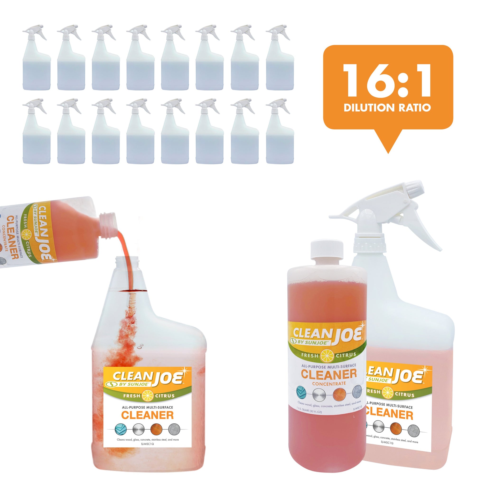 FIGHT DIRTY. From the leading manufacturer of eco-friendly outdoor yard garden equipment comes the powerful every day, multi-surface cleaner that will change the way you clean your home — CleanJoe, by SUN JOE. With one quart of concentrated solution, CleanJoe’s all-purpose, multi-surface spray tackles your toughest cleaning tasks. We wanted a “greener” all-purpose cleaner that works as hard as we do, and as hard as our tools do. Something tough enough to use throughout our facilities and on our equipment, yet gentle enough to use in our homes and around our families. We couldn’t find it, so we made it ourselves using only the finest of non-toxic ingredients and a clean, all-natural citrus-scent. CleanJoe works on multiple surfaces around your home — from stainless steel, to aluminum, to ceramic, glass, concrete, wood, laminate, and more! Simply dilute, spray, and watch CleanJoe remove even the most stubborn, caked on messes. We hope you like it as much as we do. If you don’t we’ll gladly take it back and give you a full refund!