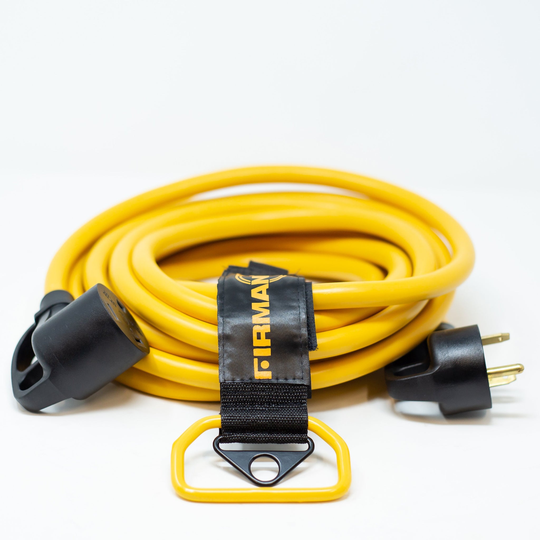 Power up your equipment with Firman's 25 Ft. power cord, the 1110! The 10 gauge, 30 AMP wiring is strong enough to withstand extensive outdoor use and its split outlet configuration allows your to easily connect to multiple devices. The 1105 also comes with a 2 year warranty.