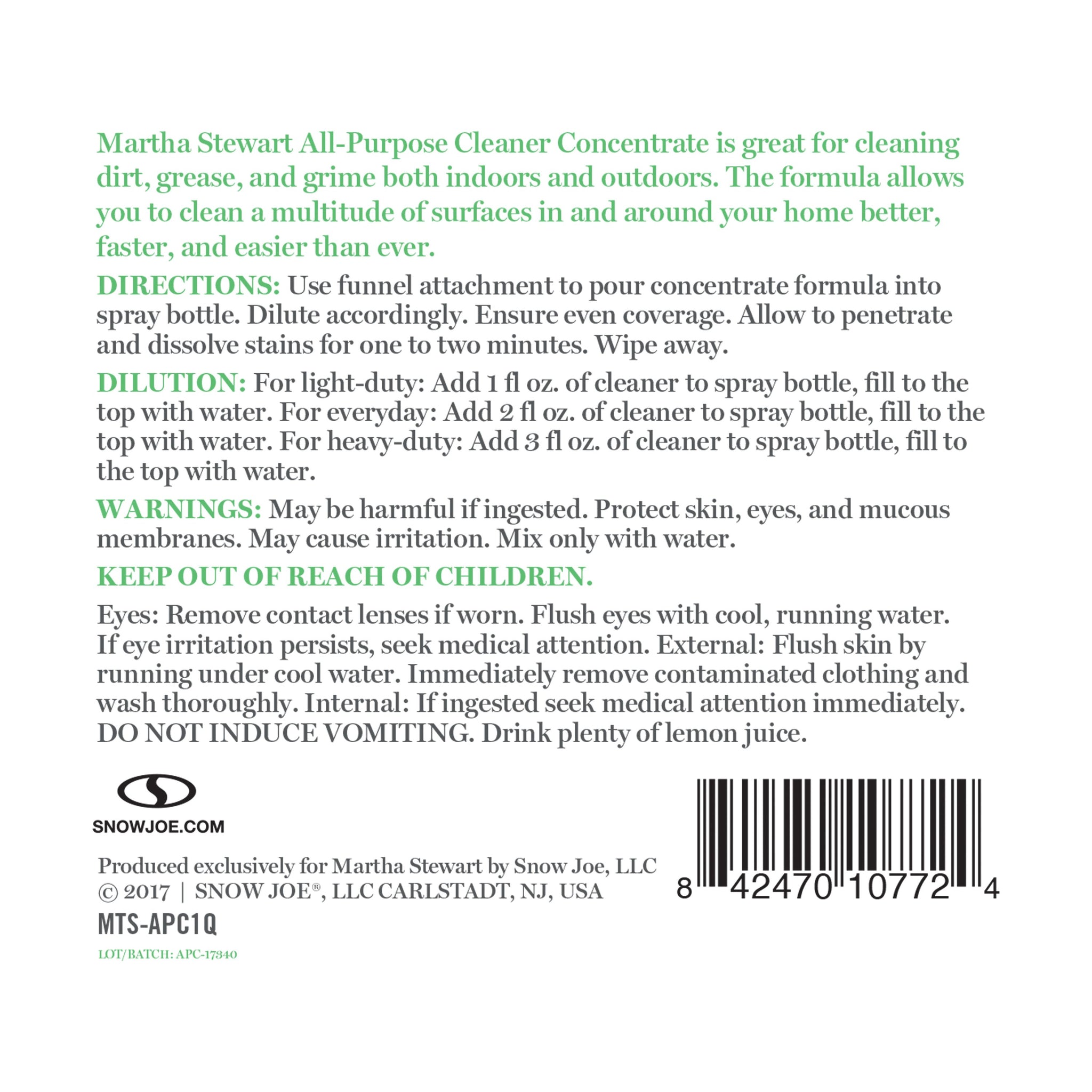 A CLEAN FIT FOR A QUEEN! From the Queen of clean herself comes the everyday, multi-surface cleaner that will put the sparkle back in your home. With one quart of concentrated cleaning solution, Martha’s all-purpose spray tackles a wide variety of messes on multiple surfaces inside and outside of your home — from stainless steel, aluminum, ceramic, glass, concrete, wood, laminate and more! Simply dilute, spray, and watch it work Martha's magic on your home!