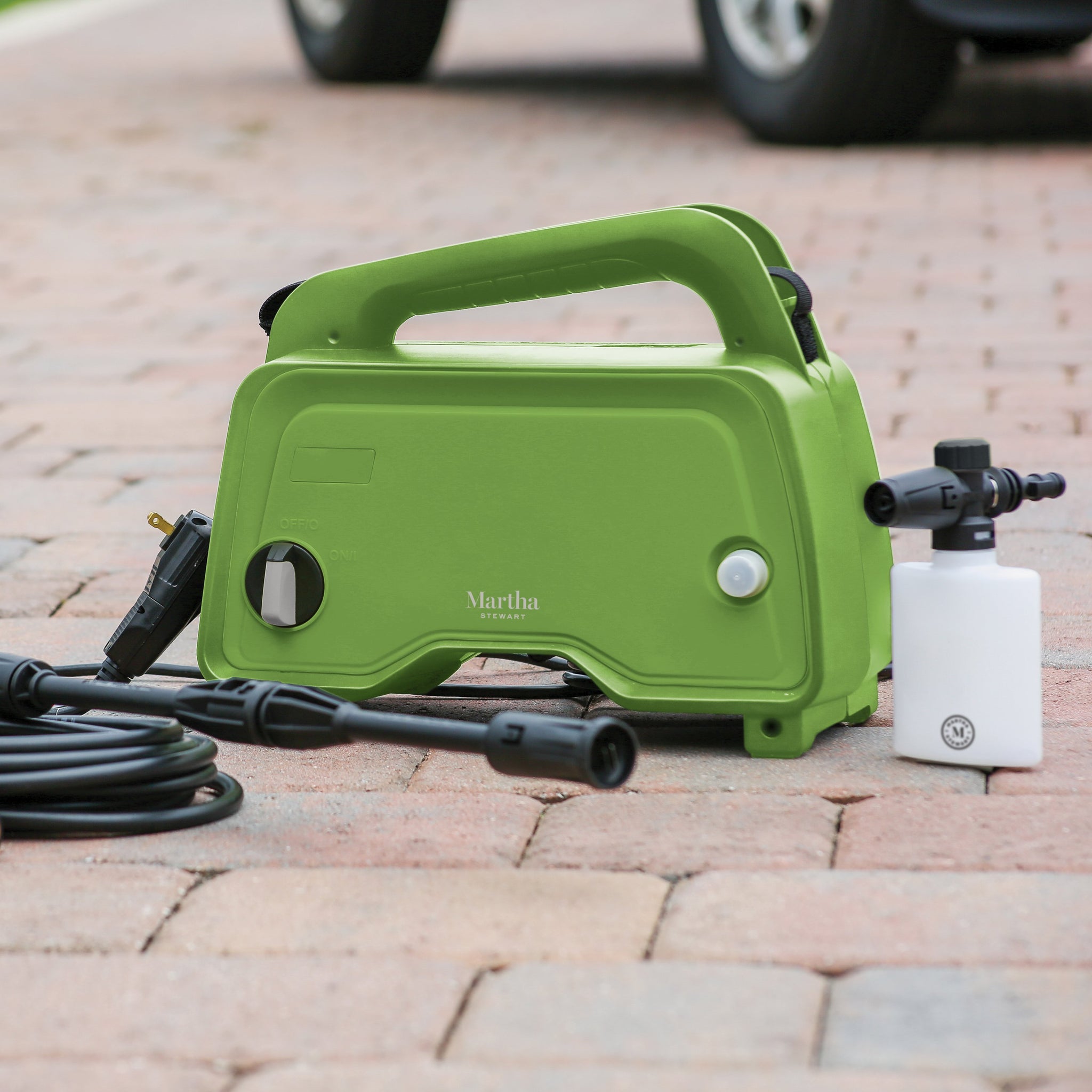 The Martha Stewart Portable Electric Pressure Washer is just the right size to take everywhere you go when you want to clean stubborn gunk, grease, and grime. It's perfect for light- to medium-duty jobs around the house, car, deck, dock, boat, cabin, porch, patio, and more! The detergent tank lets you switch from a jet spray to a gentle, soapy wash.