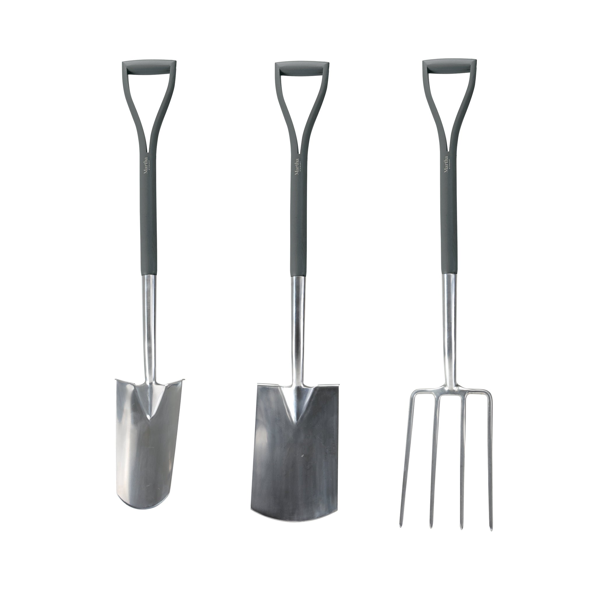 Give your lawn and garden the care it deserves with Martha Stewart's classic garden set. Made of premium quality stainless steel, this essential trio of gardening tools are ideal for a variety of yard care tasks — from transplanting bulbs, to digging trenches and post holes, to turning and breaking up piles of compost. With rugged, hardwood handles and solid steel construction you'll be able to dig all day!