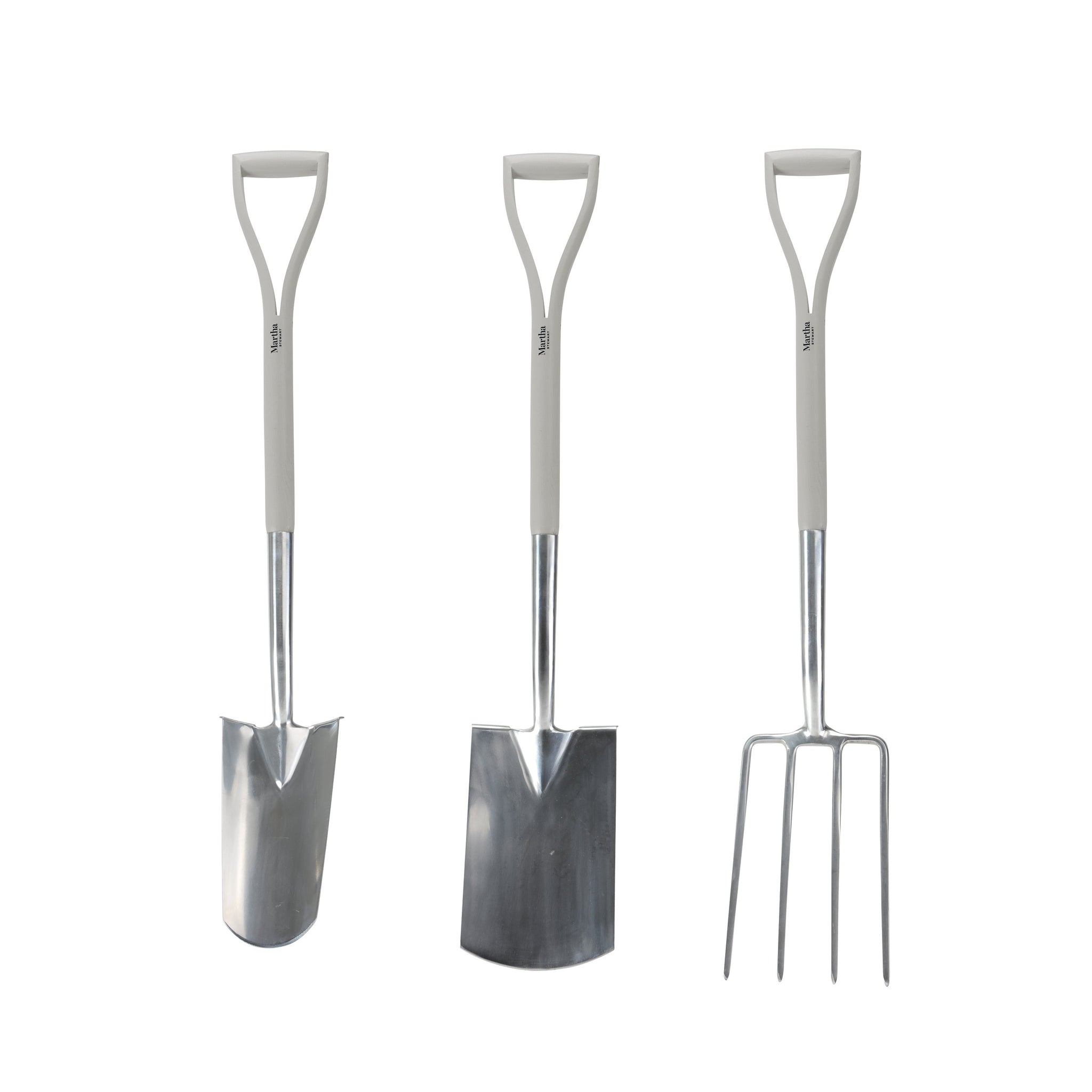 Give your lawn and garden the care it deserves with Martha Stewart's classic garden set. Made of premium quality stainless steel, this essential trio of gardening tools are ideal for a variety of yard care tasks — from transplanting bulbs, to digging trenches and post holes, to turning and breaking up piles of compost. With rugged, hardwood handles and solid steel construction you'll be able to dig all day!