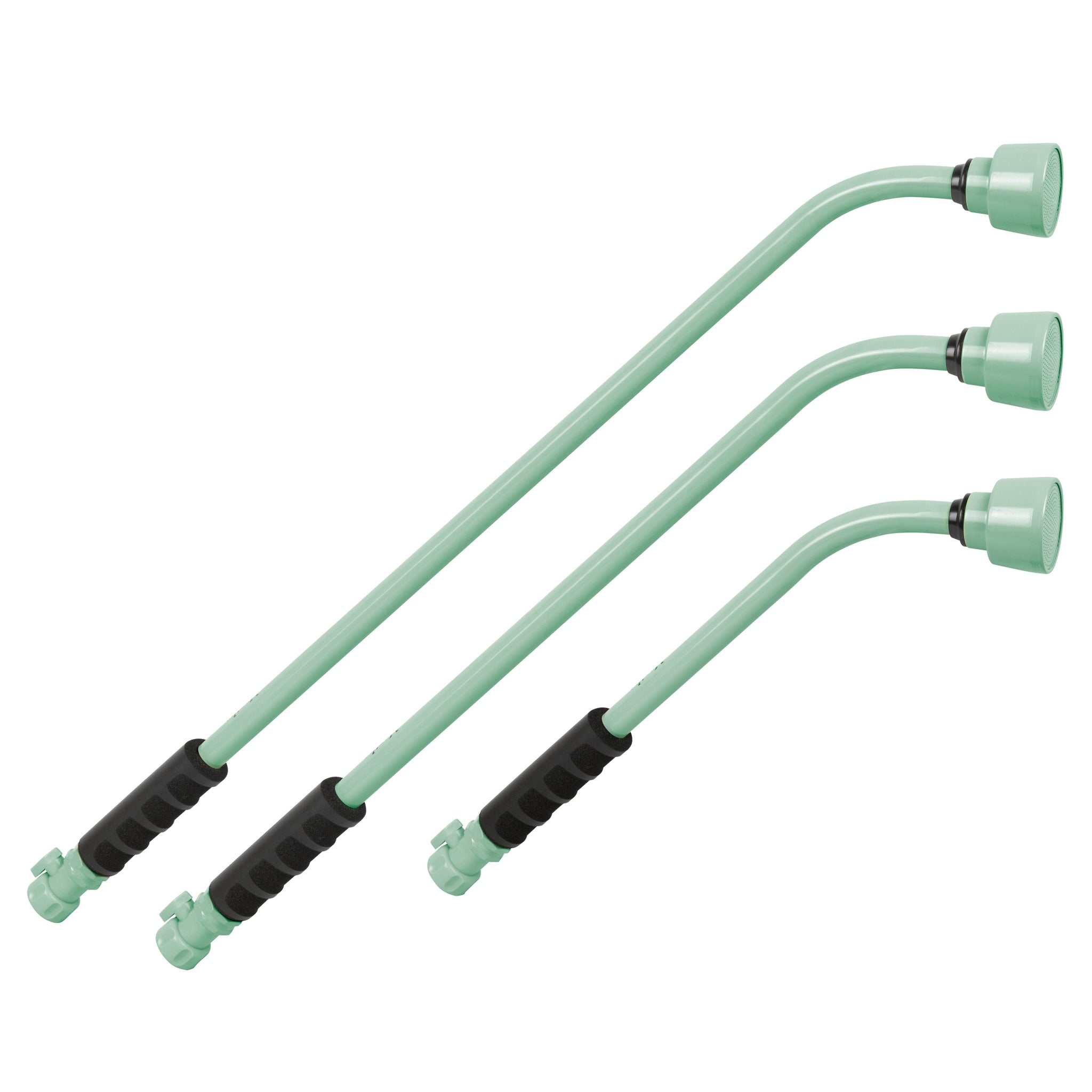 A handy 3-pack of assorted size nozzles means you'll never have to strain to water again. With an adjustable flow rate of 2.5 to 5.0 GPM, these nozzles provide a gentle spray that's easy on your plants and won't wash away soil. Great for watering in window planters, or to reach high hanging plants. Balanced design for easy control. Features a shut-off valve and comfortable non-slip foam grip. Includes 3 nozzle lengths: 19", 27", and 33".