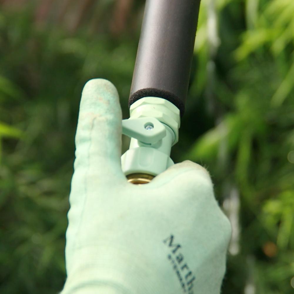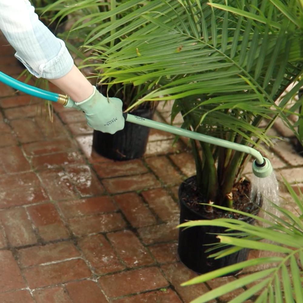 The Martha Stewart Aluminum Watering Wand provides a gentle spray that's easy on your plants and won't wash away soil. It's great for watering in-window planters, or for reaching high hanging plants. The balanced design offers easy control and it features a shut-off valve with a comfortable non-slip foam grip.