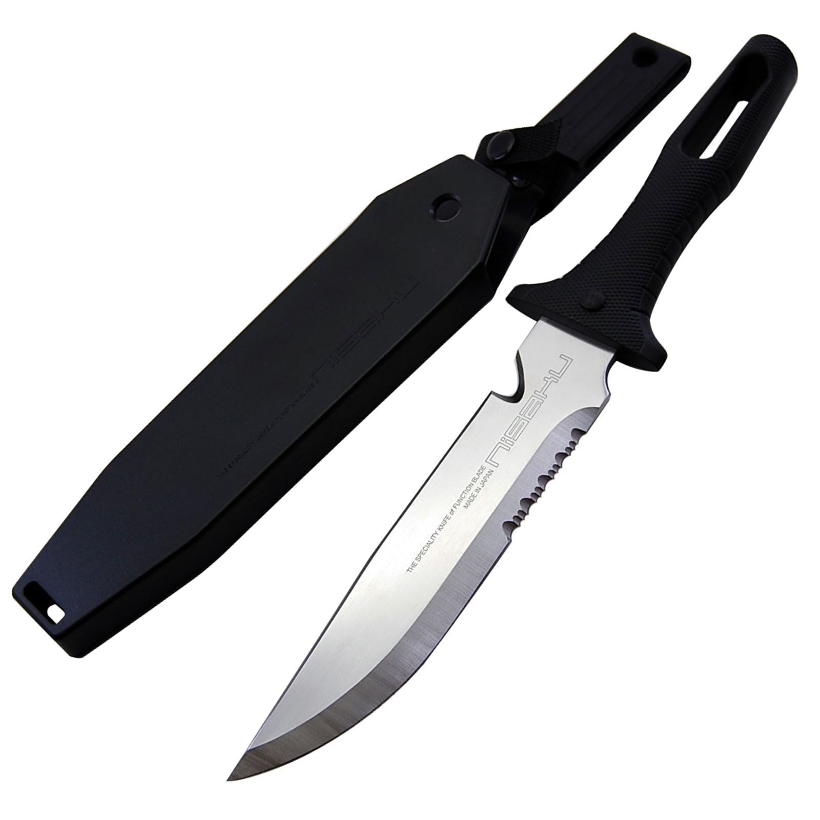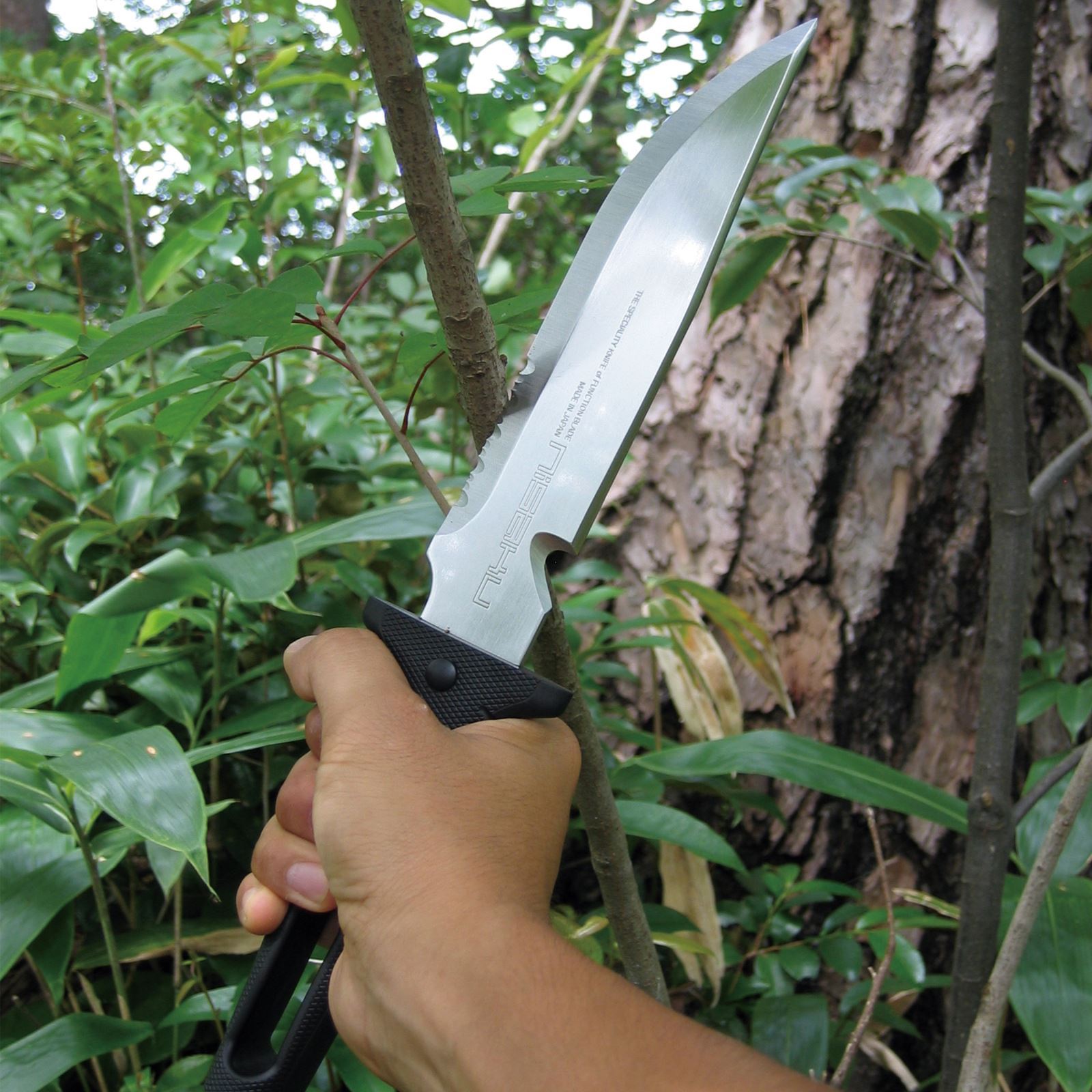 For unmatched control and precision, the Nisaku Rikugatana offers a balanced design with a gut hook feature and comfortable grip. The fine edge, drop point blade affords ultimate utility for outdoor tasks alike. This special edition model is forged with a higher quality DSR-1K6 stainless steel, making it more durable than traditional outdoor knives, and requires minimal sharpening. Includes a sheath.