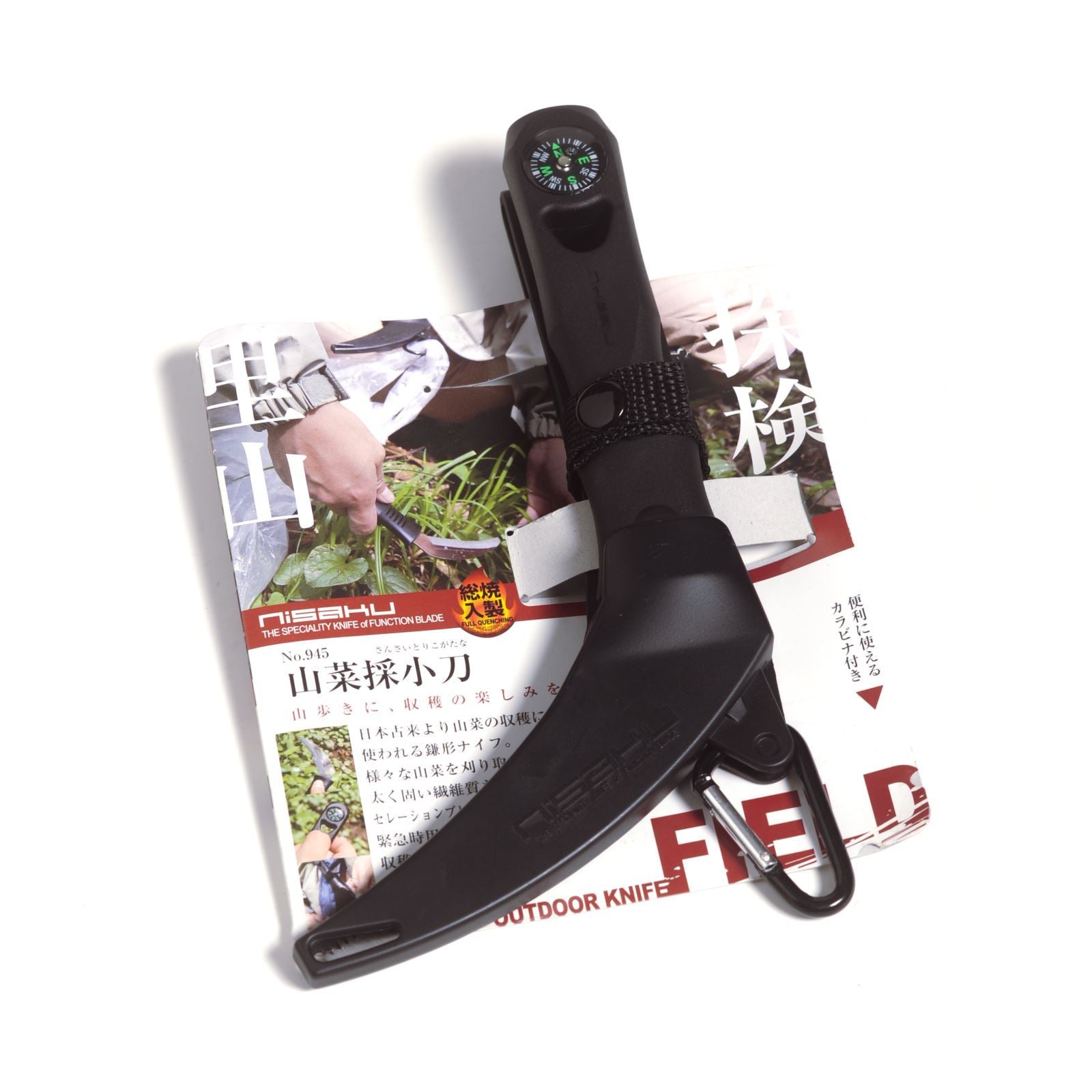 The Nisaku Stainless Steel Sansaitorikogatana is an excellent tool for both camping and outdoors projects. It is specially designed with a sickle-shaped serrated Japanese stainless steel blade to cut through many surfaces as well as tough and fibrous plants. The built-in compass and carabiner features serve multi-purpose functionality. Includes a sheath.