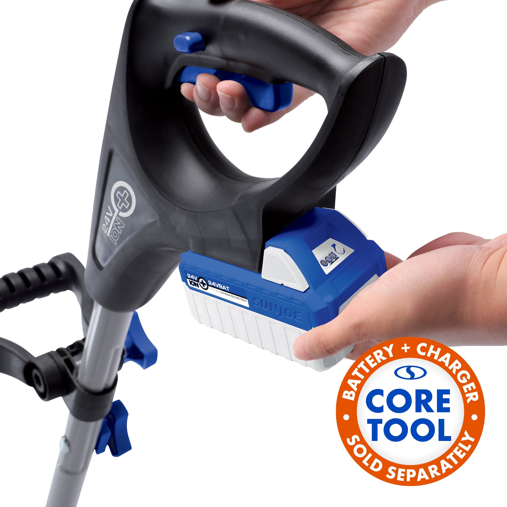 Powered by SNOW JOE’s exclusive iON+ 24-Volt lithium-ion battery system (Not included with Core Tool), 24V-SS10-CT delivers up to 24 minutes of runtime to quickly clear snow from your porch, patio, steps, sidewalk, and more. The light choice is the right choice with SNOW JOE! Weighing less than 10 lbs, 24V-SS10-CT blasts through up to 1632 pounds of snow per charge while the dual-handle design eliminates the need to bend and strain, maximizing user comfort and ease of use.