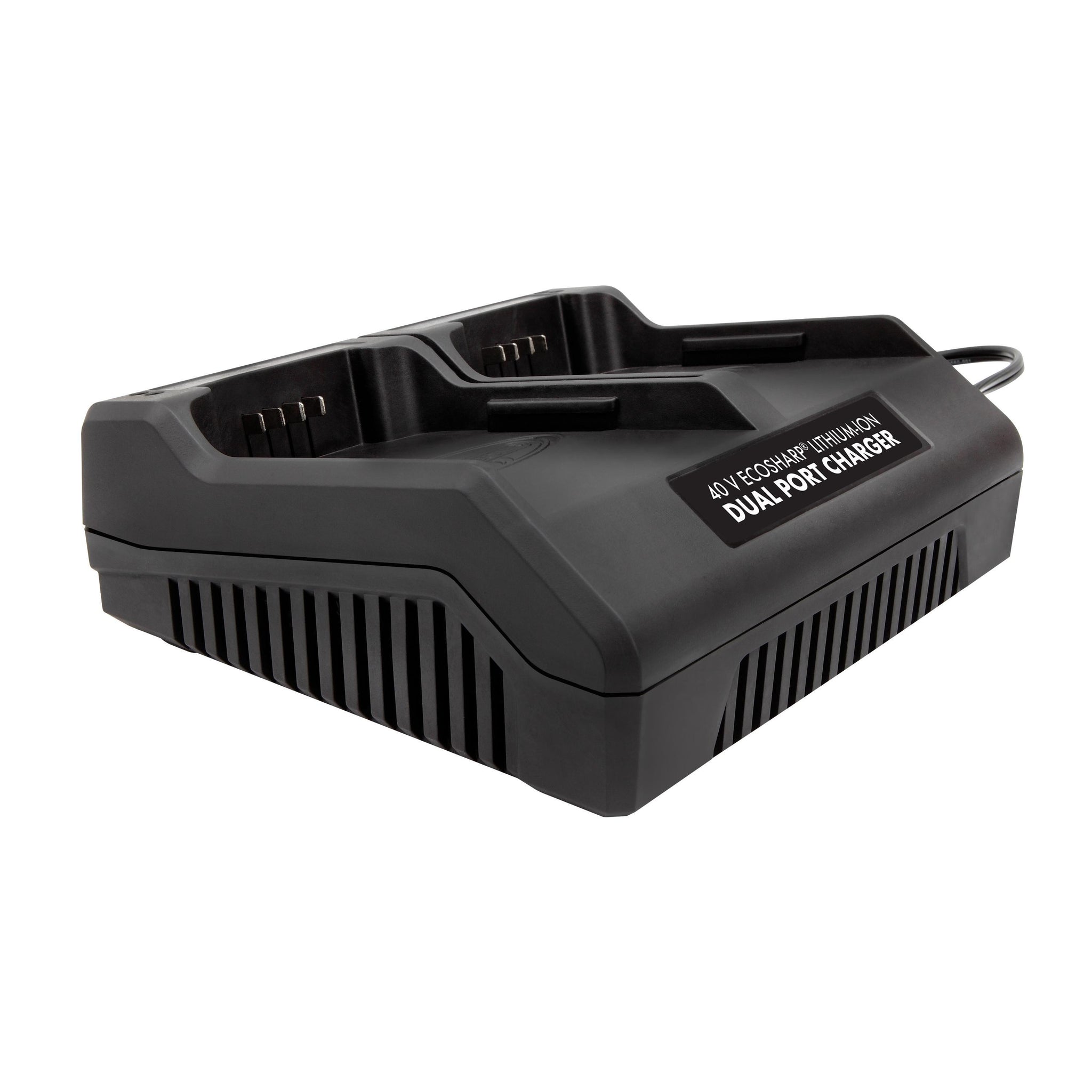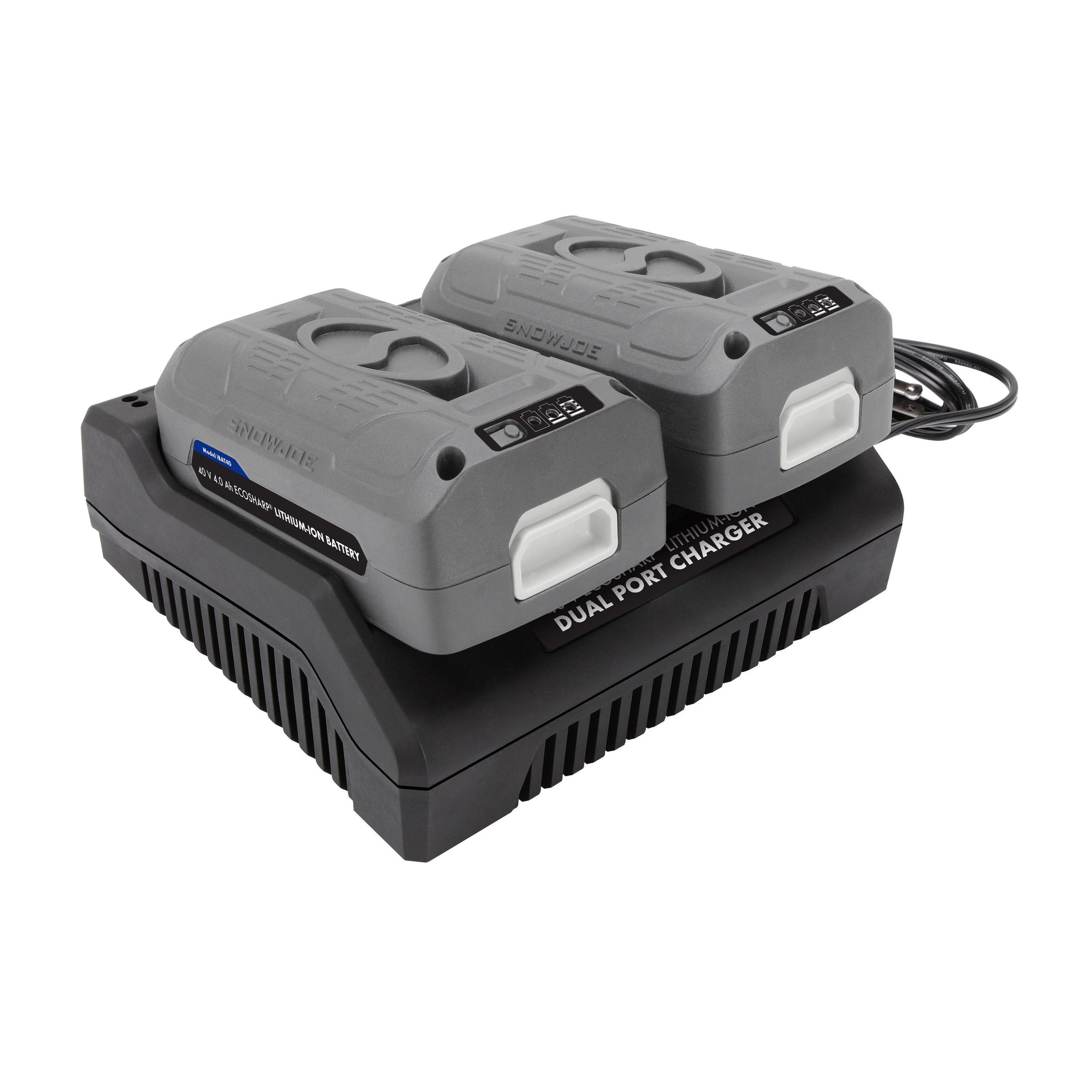 DOUBLE DUTY. Accomplish twice as much in half the time with the iCHRG40-DPC Dual Port Charger, made exclusively for use with the complete line of Snow Joe + Sun Joe iON battery-powered tools. With dual ports, there’s never a wait - both batteries are fully charged and ready to tackle your yard tasks, so you can do more with less interruption - trim trees, cut logs, mow the lawn or blow snow. Simply swap batteries, and go! Made for use with both one or two batteries, the iCHRG40-DPC dual port charger is compatible with the following Snow Joe + Sun Joe EcoSharp® lithium-ion batteries, including iBat40, iBat40XR, iBat40-LT, iBAT40-LTE.