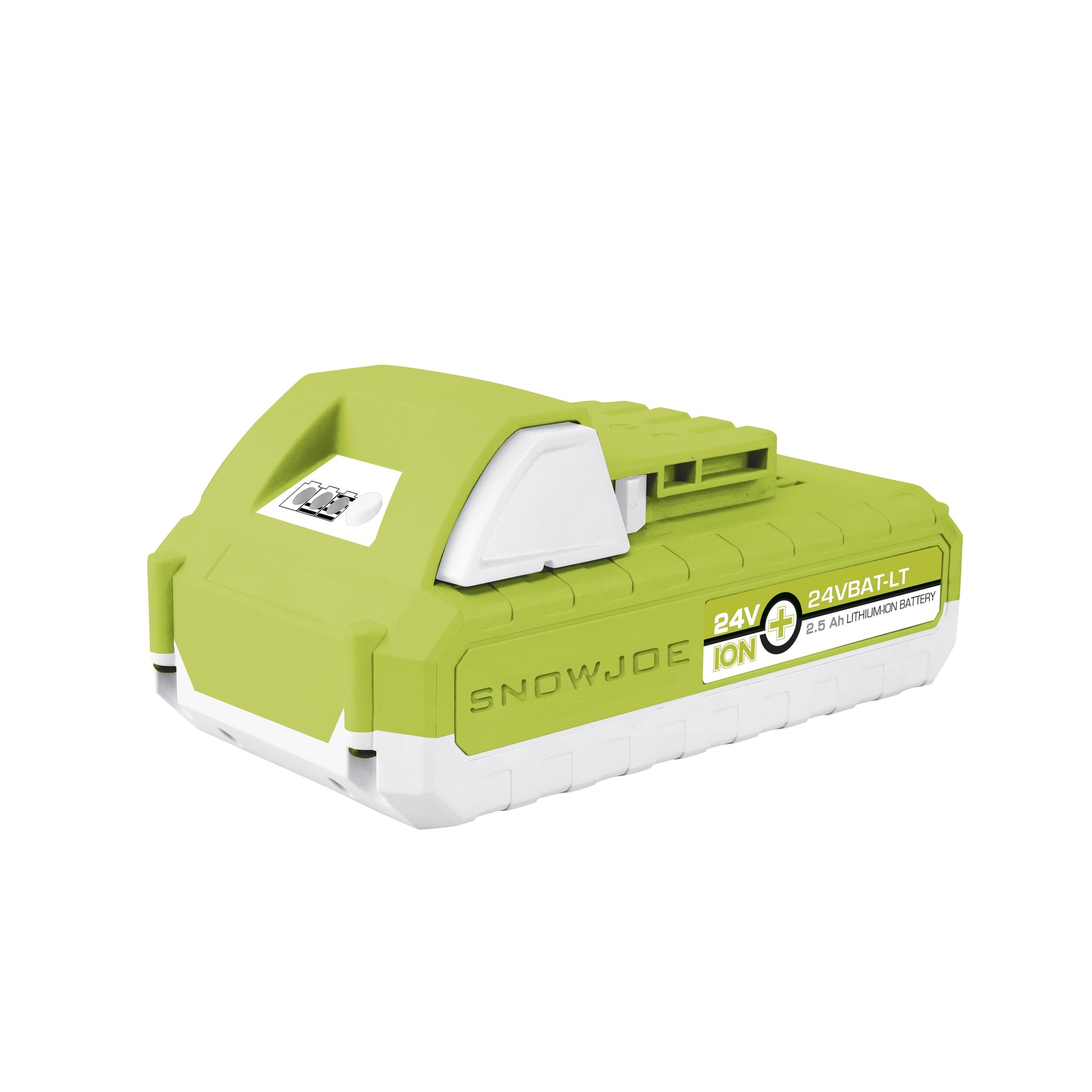 Power up. Power your cordless iON tools the eco-friendly way with the 24-Volt iON+ 24VBAT-LT lithium-ion battery. Compatible with all Snow Joe® + Sun Joe® 24V iON+ models, the 24VBAT-LT features high capacity 2.5 Ah lithium-ion cells that deliver no-fade power for maximum job performance.