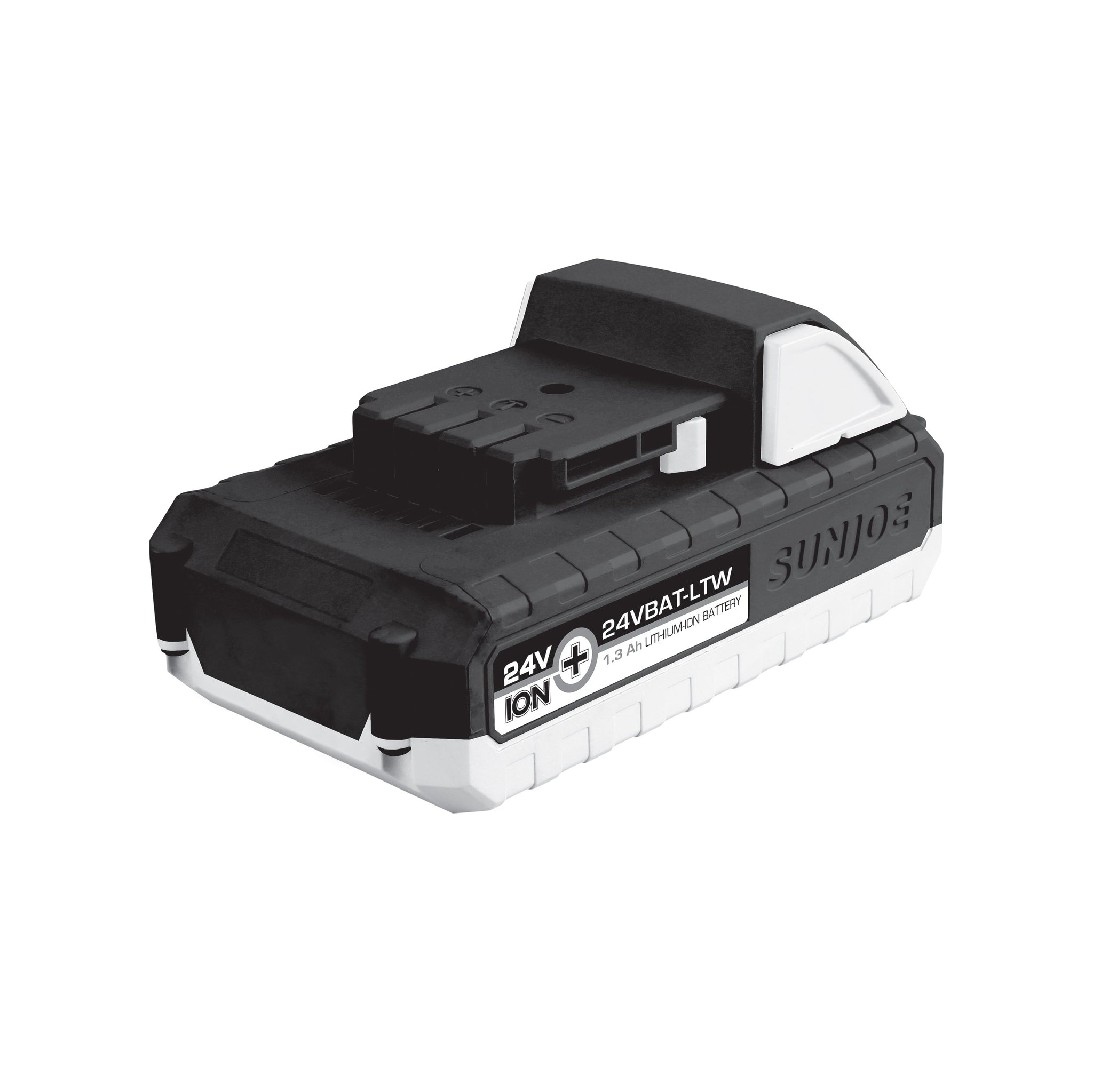Power up. Power your cordless iON tools the eco-friendly way with the 24-Volt iON+ 24VBAT-LTW lithium-ion battery. Compatible with all Snow Joe® + Sun Joe® 24V iON+ models, the 24VBAT-LTW features high capacity 1.3 Ah lithium-ion cells that deliver no-fade power for maximum job performance.