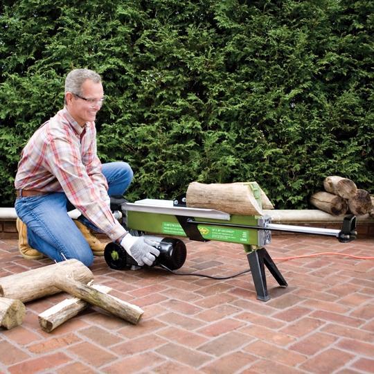 The Sun Joe LJ601E electric log splitter is a portable log splitter made for home or light-duty use. Its powerful 15-amp/2-horsepower motor generates an approximate driving force of 5 tons, which can easily split your standard size firewood log measuring 10 inches by 20 inches. Equipped with rear wheels, the Sun Joe electric log cutter can be easily moved to different work areas. Plus, it's durable steel construction ensures long-lasting wear. This electric log splitter offers several safety features including an overload circuit reset button and a dual-handed safety switch system. This machine is ETL-inspected and approved and comes with a full two-year warranty from the manufacturer.