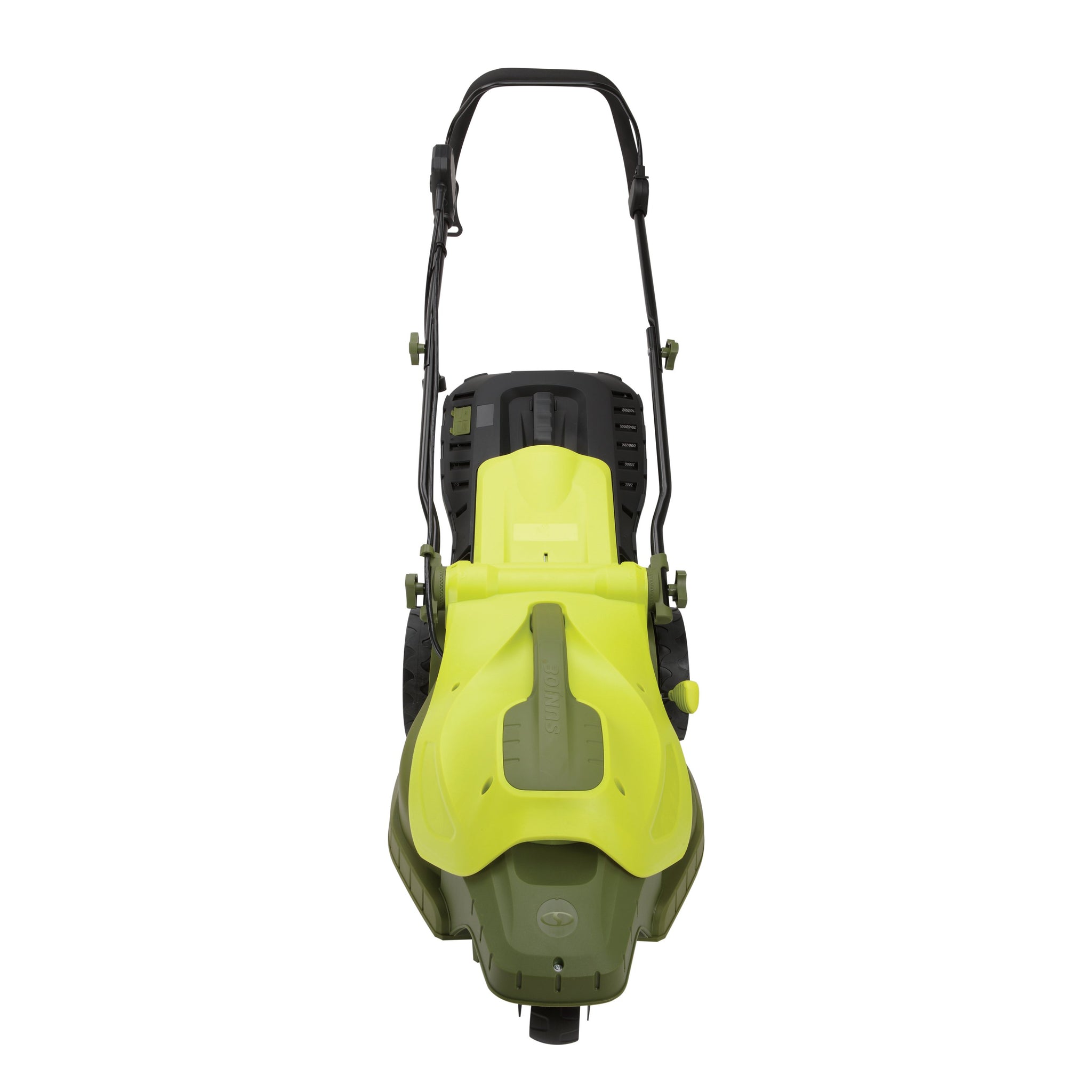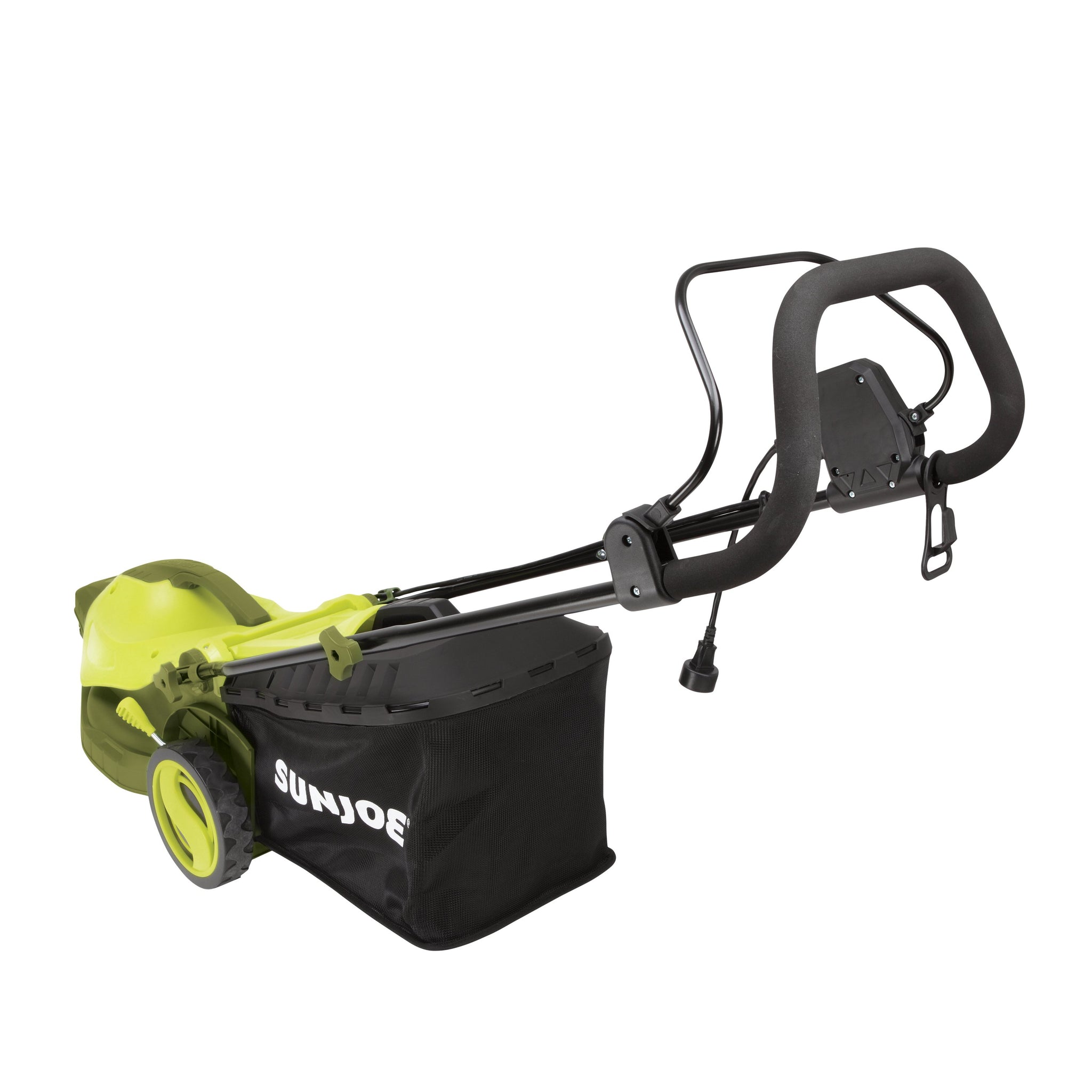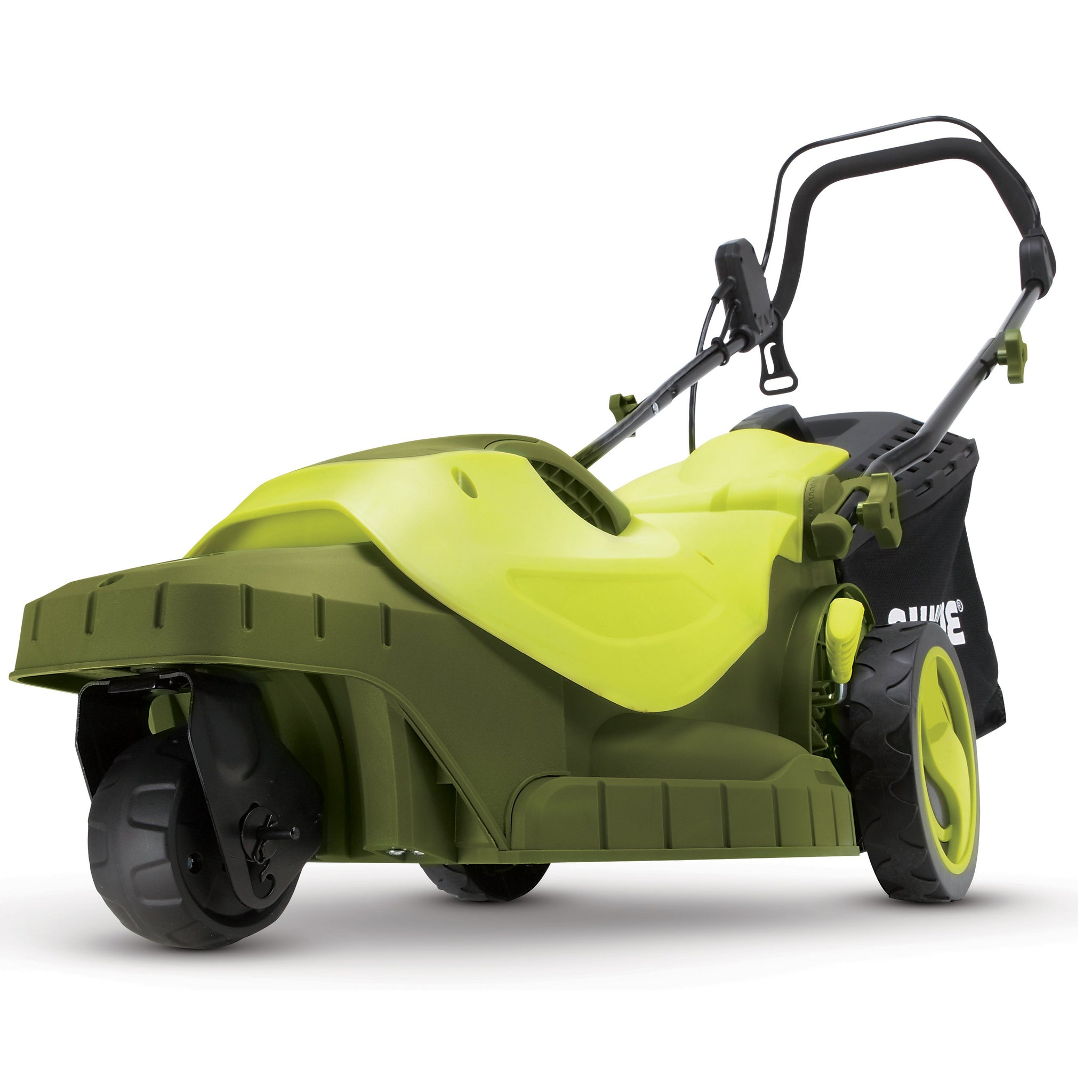 DO MORE WITH LESS THAN 4!  Mow with Joe and go with a trio of wheels for the closest cut yet! SUN JOE's single nose wheel provides maximum maneuverability, the tightest turning ratio, and unparalleled precision to easily pivot beneath hedges, and up close around trees or flower beds. The powerful 12 AMP electric motor ensures care-free continuous cutting, and the 16" wide cutting deck, 4-position adjustable cutting height, plus removable 9.25 gal collection bag allow you tailor your turf with unparalleled precision.