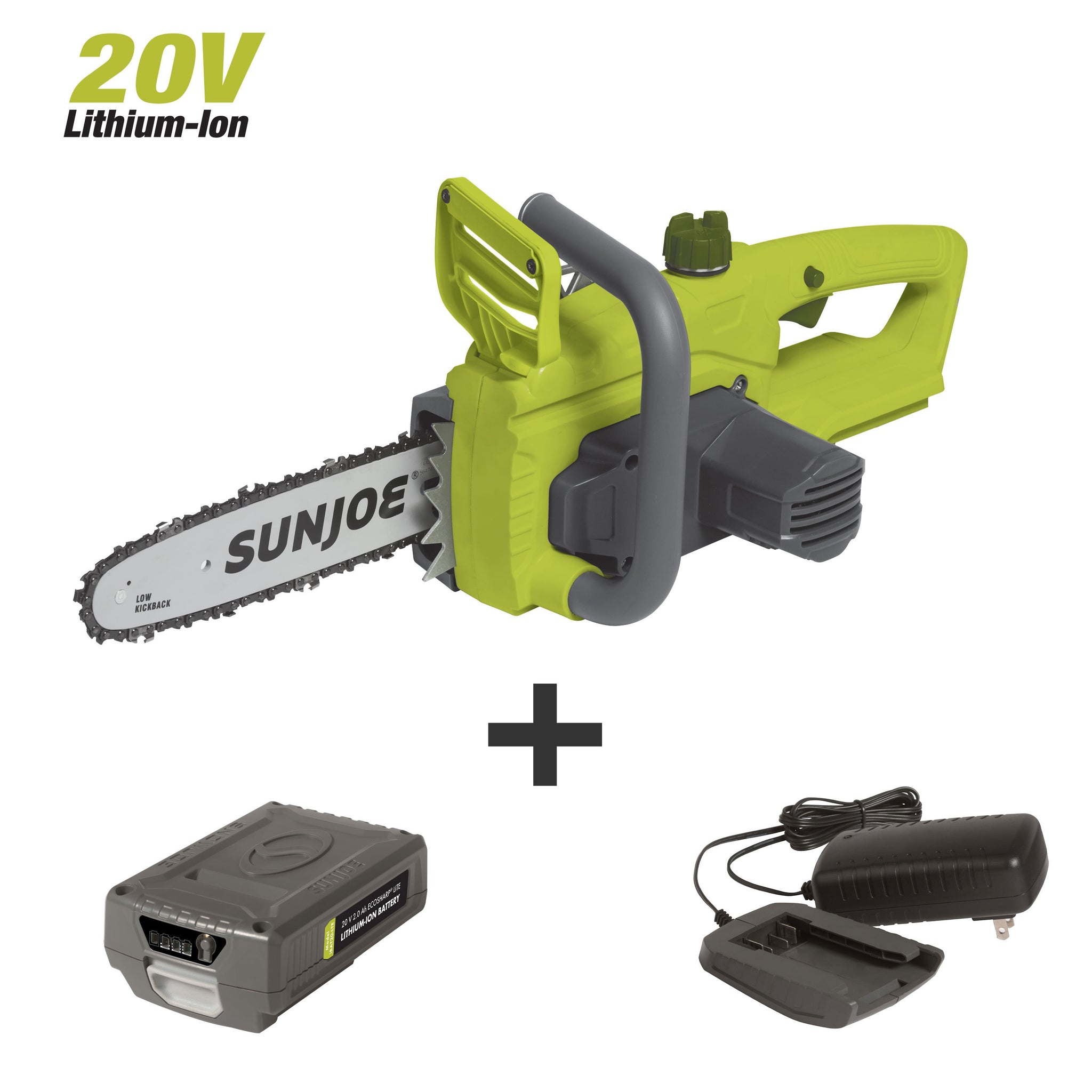 Sun Joe 20ViON-CS10-SJG 20-Volt iON Lithium Ion Chainsaw Kit | 10-Inch | W/ 2.0-Ah Battery and Charger