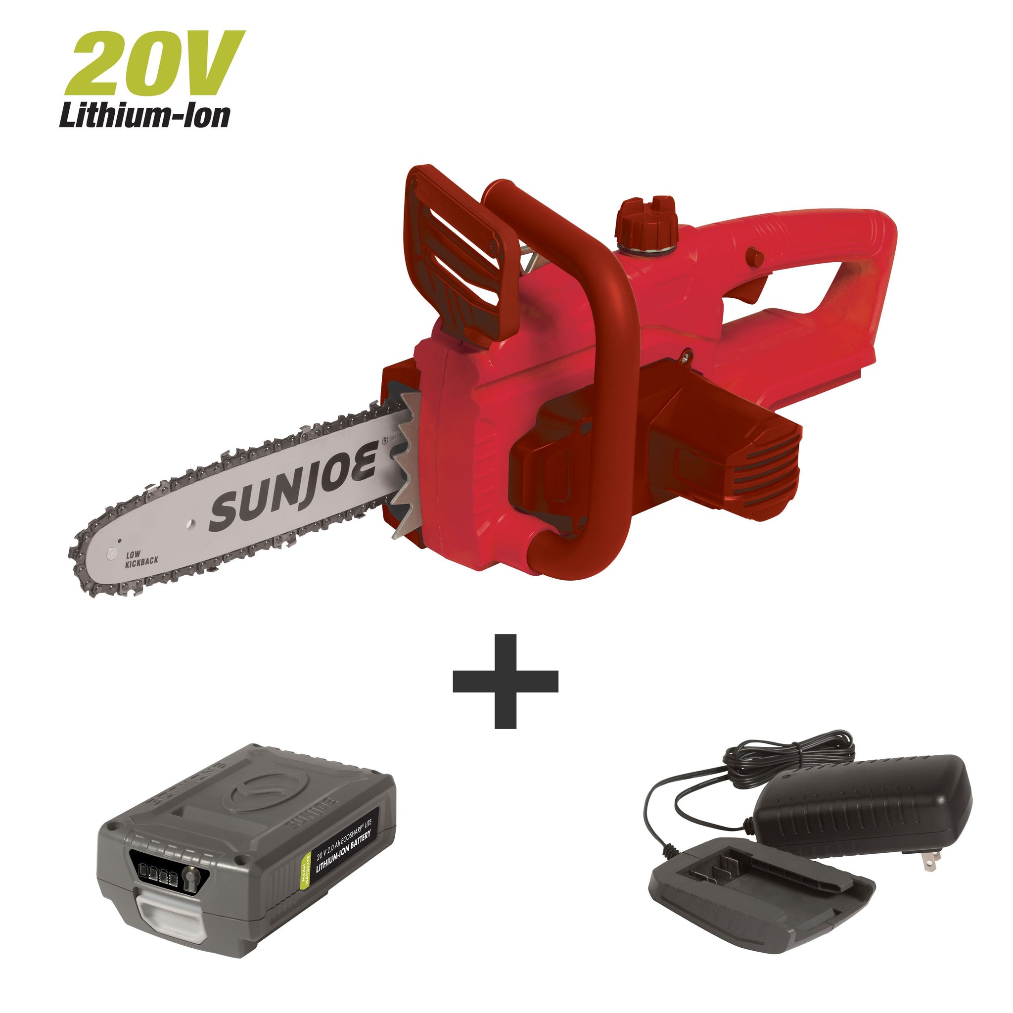 CUT DOWN TO SIZE. Lightweight and powerful, the iON 10" Cordless Chain Saw with battery plus charger features a durable, self-lubricating Oregon cutting bar and chain to cut branches, limbs and logs up to 9.5 inches thick. At the heart of iON is the long-life, rechargeable EcoSharp lithium-ion battery system, for reliable performance, season after season - and no carbon emissions for cleaner air. iON starts instantly with a simple push of a button and its ultra-lightweight, ergonomic design maximizes maneuverability and user comfort during use. Safety features include: hand guard with kick-back brake function, built-in safety switch to prevent accidental starts, sturdy aluminum handle, and protective sheath for safe storage.