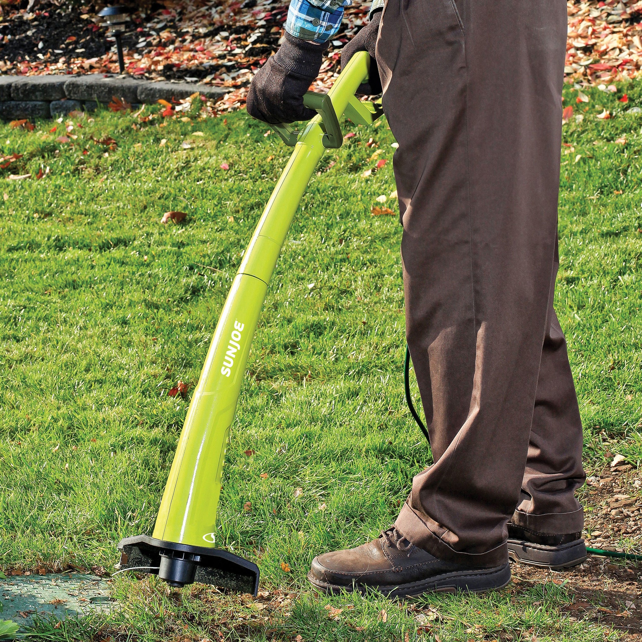 Powered electrically, this grass trimmer starts instantly and reliably with the push of a button without having to mess with gas or oil or worry about maintenance, tune-ups or toxic emissions. Simply plug in your Sun Joe®, fasten your extension cord to the cord lock, squeeze the push button on the handle, and watch this grass trimmer's powerful 3-amp motor make quick work of your overgrown grass, cutting a 9.45-inch swath with each pass.