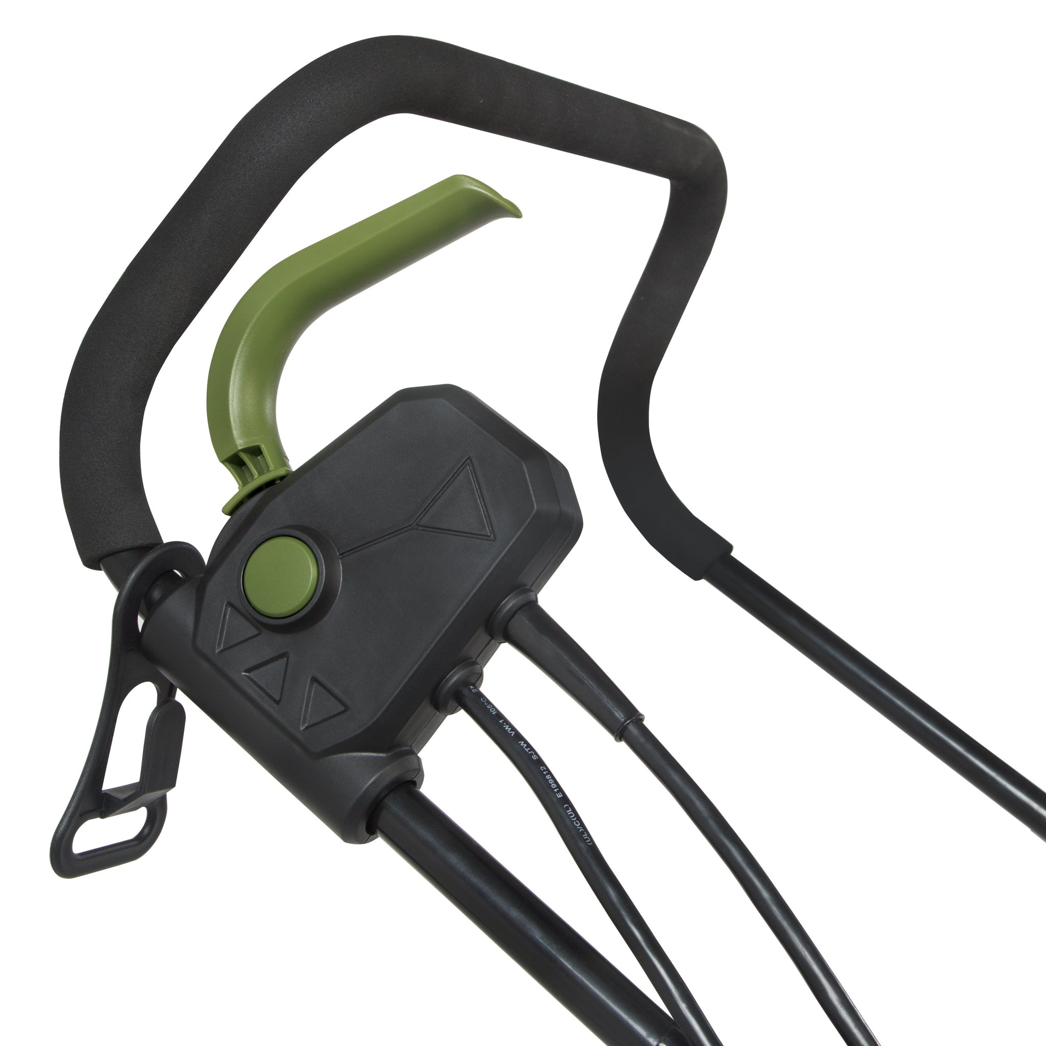 LET YOUR LAWN BREATHE. Get your lawn in top green shape with the Sun Joe® Dethatcher Joe AJ801E 13-inch electric scarifier lawn dethatcher. Powered by a robust 12-amp motor, the Dethatcher Joe rakes a 13-inch wide path in a single pass to get your job done fast. Enhancing its raking ability is AirBoost technology, which maximizes thatch pickup with spring steel tines that stay sharp longer for reliable performance. Use the 5-position depth control knob to tailor the raking depth from -0.4 in. (10 mm below the soil) to 0.4 in. (10 mm above the soil), depending on your lawn’s scarifying or dethatching needs. Scarifying your lawn at regular intervals cuts grass roots and encourages growth for thicker, healthier turf.