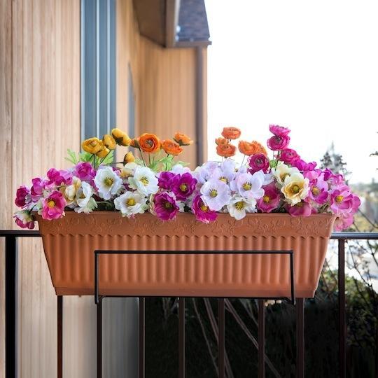 DECKED OUT WITH DECO JOE. Liven up your deck this spring with the Sun Joe® Deco Joe black flower box holder. This black flower box holder is designed to accommodate flower boxes 7-inches wide by 18 to 36-inches long. Deco Joe makes it easy to hang and display your potted plants and blossoming flowers. Simply insert your flower box into Deco Joe’s secure flower box holder and attach its hooks onto any railing up to 1.5-inches wide to instantly beautify your deck, balcony, patio, porch, fence or trellis. Made of a durable rust-resistant material, the Deco Joe black flower box holder weathers all kinds of weather for long-lasting wear through multiple seasons. Available in black or white, the Deco Joe flower box holder coordinates nicely with all outdoor décor. GET EQUIPPED® this spring with the Deco Joe flower box holder—an easy and affordable way to spruce up your outdoors.
