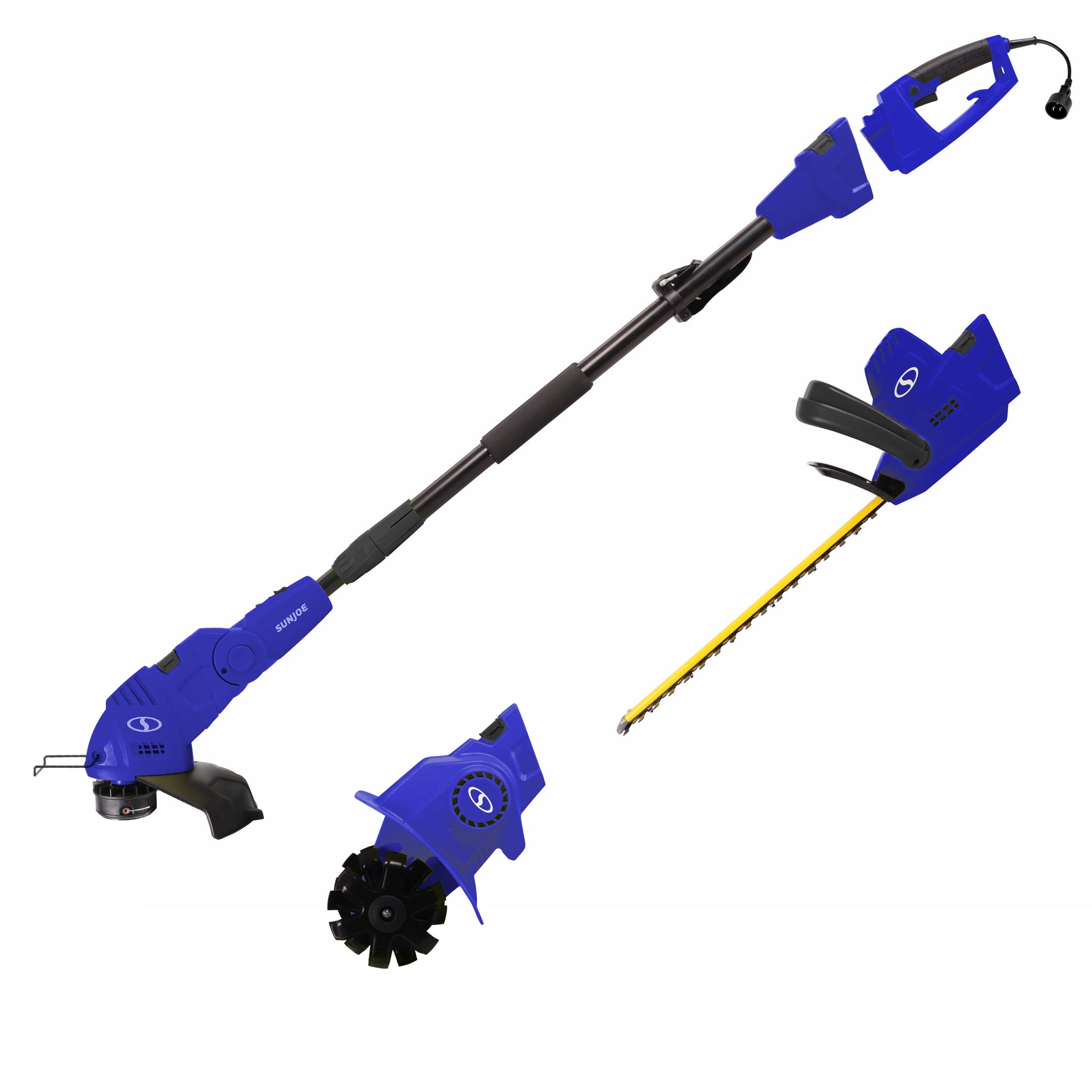 • Load image into Gallery viewer, Sun Joe GTS4000E-SJB Electric Lawn Care System | Pole Hedge Trimmer | Grass Trimmer | Garden Tiller (Blue)