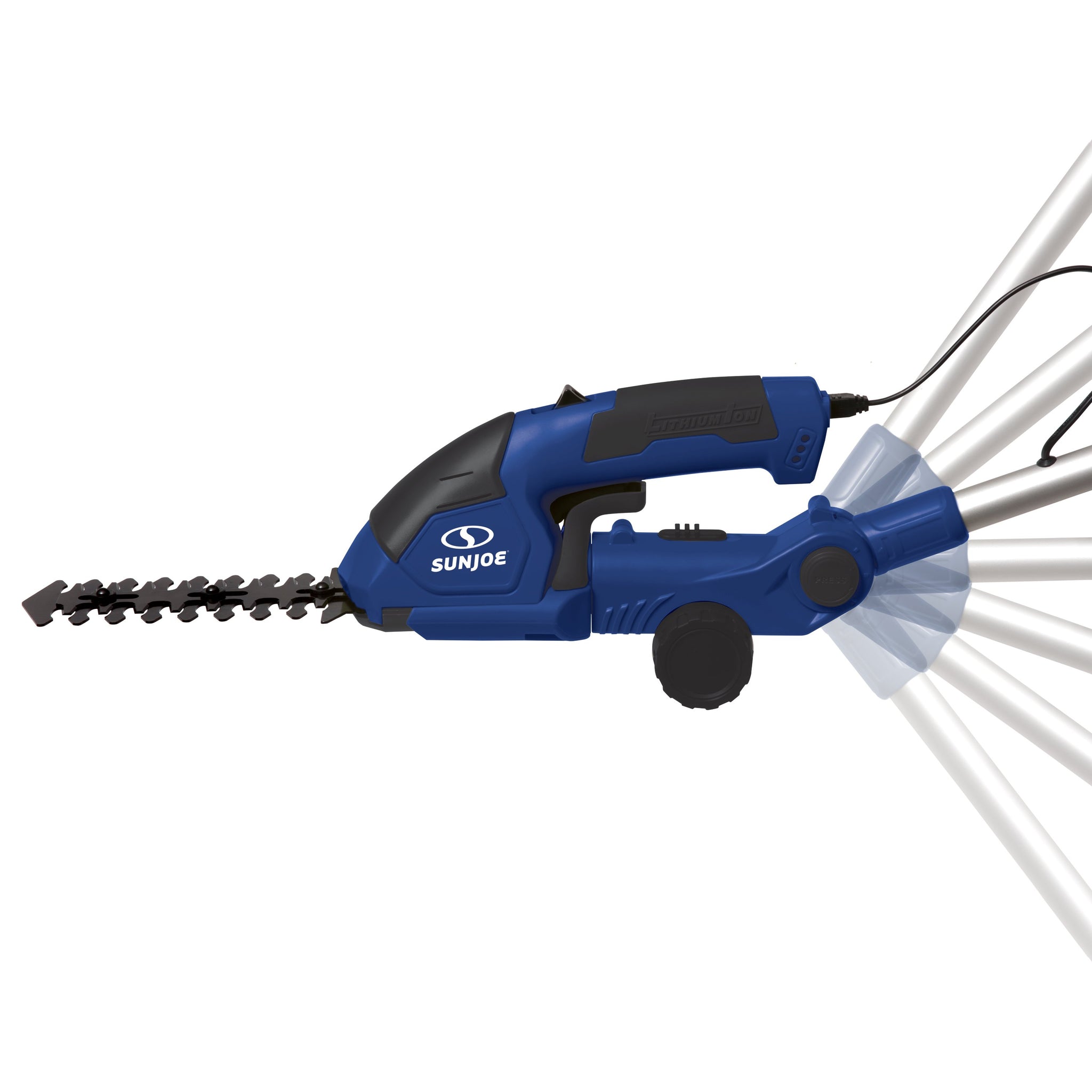 HEDGE HIGH, SHEAR LOW GIVE YOUR BACK A BREAK! Perfect for post-mowing touch ups in tight spaces, the Sun Joe HJ605CC 2-in-1 grass shear hedger with extension pole boasts a 7.2-volt long-life lithium-ion battery for hassle-free, cordless operation. Power up instantly with the push of a button and start shearing or shrubbing with cord-free convenience. Rechargeable battery power makes Sun Joe eco-friendly and maintenance-free, so you’ll be able to get the job done without having to worry about gas, oil, costly seasonal tune-ups or toxic hydrocarbon emissions. And because there’s a handy 3-foot extension pole, it’s even better for your back! No more bending, crawling or straining in pursuit of the perfect edge. Sun Joe connects quickly, and detaches easily when you’re done.
