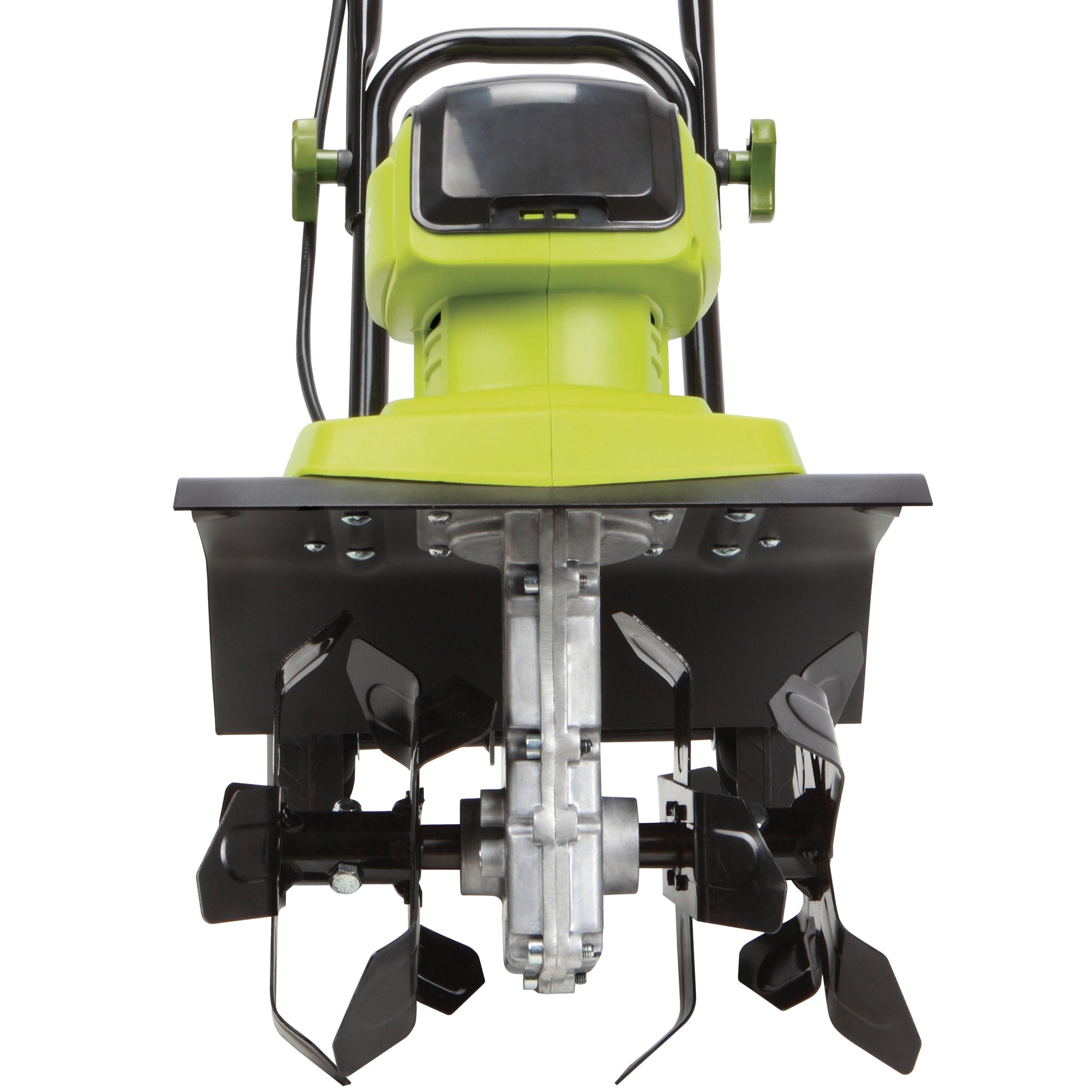 THE DIRTY LITTLE SECRET OF GREAT GARDENS. Introducing a greener, cleaner way to get dirty with the Sun Joe iON12TL 40-volt 12-inch Cordless Tiller/Cultivator. No pull cords, gas, oil, tune-ups or tangled extension cords, iON's powerful 650 watt brushless motor quickly pulverizes dirt, effortlessly slicing through the soil at up to 300 RPM, ensuring maximum aeration and perfectly preparing the seed bed for plating, iON's 4-steel tilling blades quickly cultivate an area 12-inches wide and up to 8-inches deep in seconds to control weeds where needed, or loosen compacted soil. 3-position, height-adjustable rear wheels make it easy to maneuver wherever it's needed - and it's collapsible handle makes it a cinch to store when it's not. And iON12TL comes complete with a two-year warranty. So get growing and Go With Joe - the iON12TL Cordless 40-Volt 12-Inch Tiller/Cultivator from Sun Joe. Get Equipped.