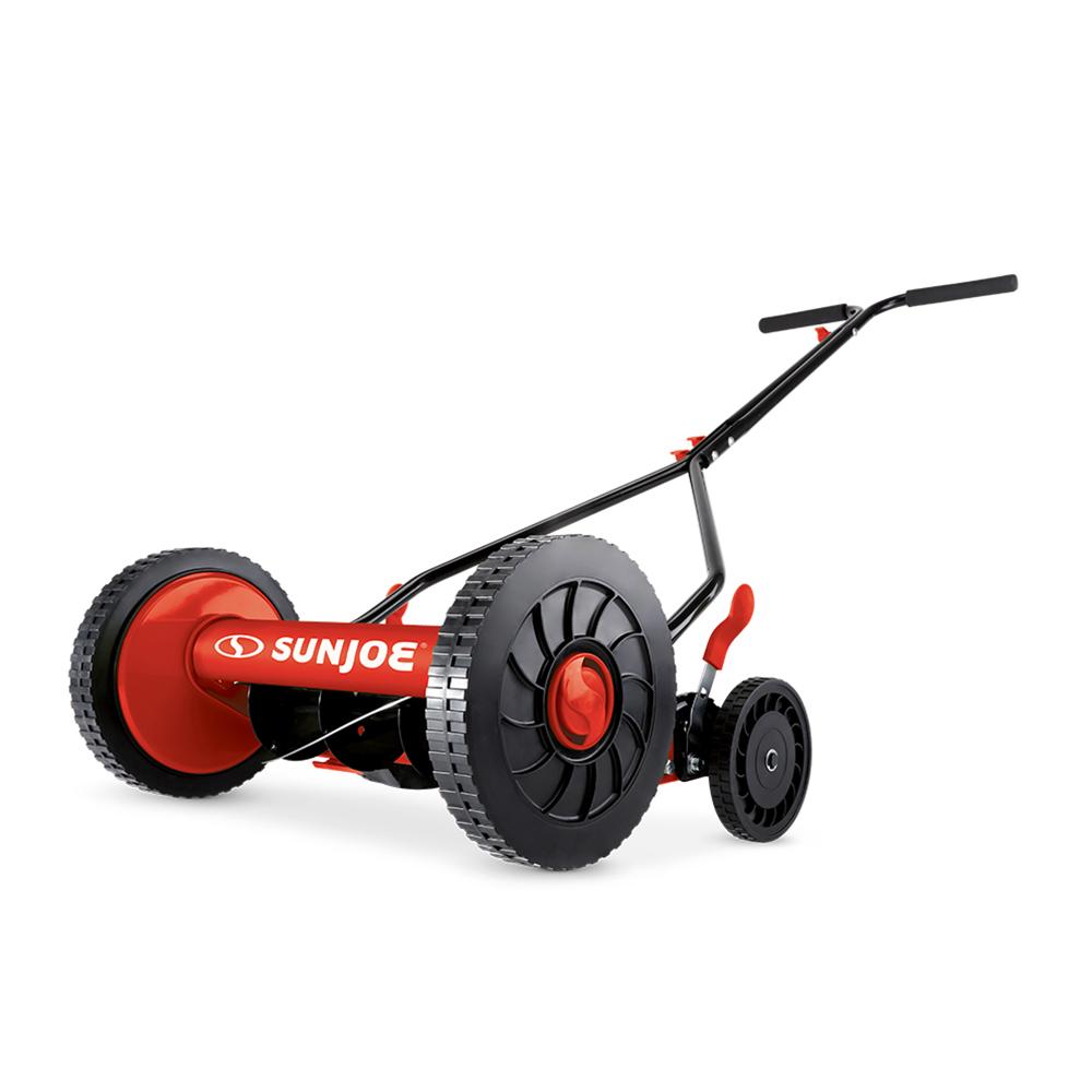MOW WITH JOE. Tailor your turf with unparalleled precision with the MJ503M-RED Manual Reel Mower from Sun Joe®. Powered with a push, this manual mower’s 5 sharpened steel blades cut a crisp 14-inch path in a single pass — no gas, oil or electricity required. At under 25 lbs, MJ503M-RED is an easy-to-use, lightweight and maneuverable push reel mower designed to tackle the toughest turf with ease, all while providing a quiet, eco-friendly solution for any lawn. With 9-position adjustable height settings — from 1.1 to 2.9 inches — you’ll have the ultimate control to select just the right height so your lawn will always look its best. Featuring rugged, all-terrain quad wheel design for enhanced stability and maneuverability, plus a padded handle for a secure, non-slip foam grip. Make your lawn the envy of the entire neighborhood with the MJ503M-RED 14-Inch Reel Mower — and Go With Joe®.
