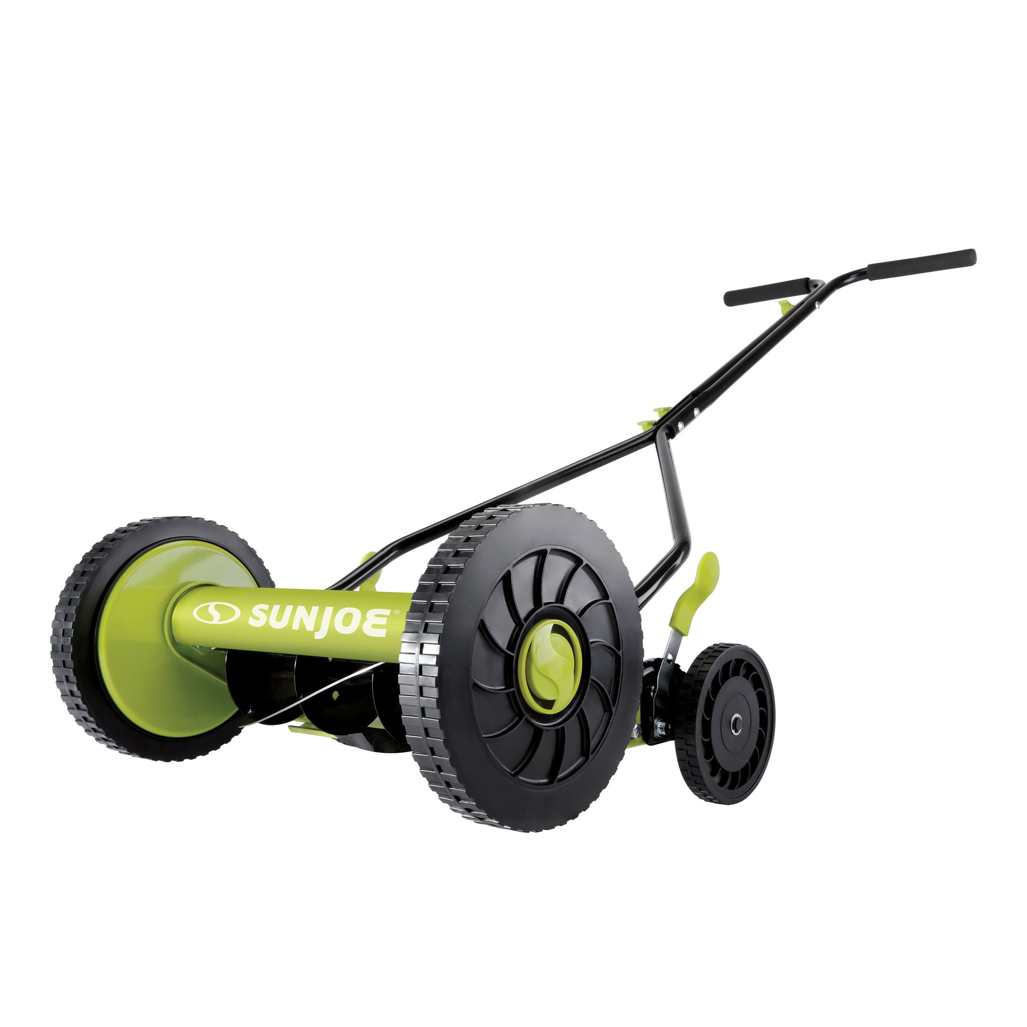 MOW WITH JOE. Tailor your turf with unparalleled precision with the MJ503M-RM Manual Reel Mower from Sun Joe®. Powered with a push, this manual mower’s 5 sharpened steel blades cut a crisp 14-inch path in a single pass — no gas, oil or electricity required. At under 25 lbs, MJ503M is an easy-to-use, lightweight and maneuverable push reel mower designed to tackle the toughest turf with ease, all while providing a quiet, eco-friendly solution for any lawn. With 9-position adjustable height settings — from 1.1 to 2.9 inches — you’ll have the ultimate control to select just the right height so your lawn will always look its best. Featuring rugged, all-terrain quad wheel design for enhanced stability and maneuverability, plus a padded handle for a secure, non-slip foam grip. Make your lawn the envy of the entire neighborhood with the MJ503M-RM 14-Inch Reel Mower — and Go With Joe®.