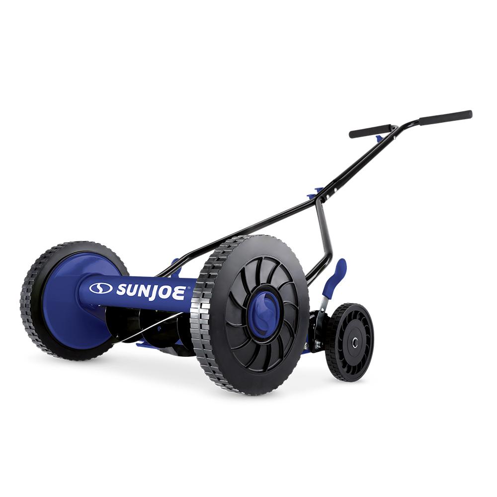 MOW WITH JOE. Tailor your turf with unparalleled precision with the MJ503M-SJB-RM Manual Reel Mower from Sun Joe®. Powered with a push, this manual mower’s 5 sharpened steel blades cut a crisp 14-inch path in a single pass — no gas, oil or electricity required. At under 25 lbs, MJ503M-SJB-RM is an easy-to-use, lightweight and maneuverable push reel mower designed to tackle the toughest turf with ease, all while providing a quiet, eco-friendly solution for any lawn. With 9-position adjustable height settings — from 1.1 to 2.9 inches — you’ll have the ultimate control to select just the right height so your lawn will always look its best. Featuring rugged, all-terrain quad wheel design for enhanced stability and maneuverability, plus a padded handle for a secure, non-slip foam grip. Make your lawn the envy of the entire neighborhood with the MJ503M-SJB-RM 14-Inch Reel Mower — and Go With Joe®.