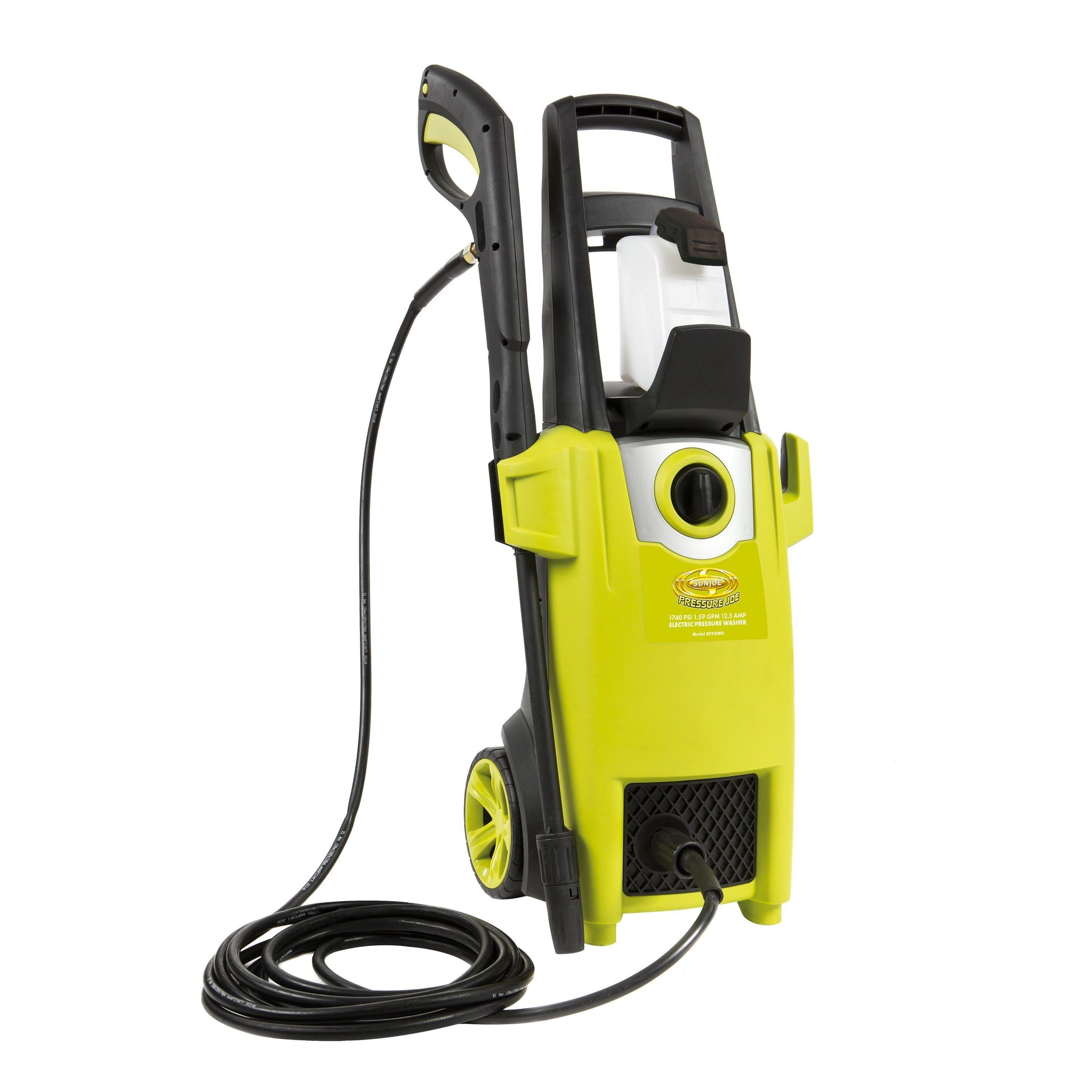 UNDER PRESSURE. Tackle your home, outdoor and auto cleaning projects with the Pressure Joe SPX2000-RM. Packed with a powerful 1500-Watt/12.5-amp motor, the SPX2000-RM generates up to 1740 PSI/1.59 GPM to make quick work out of stubborn debris. A 34-inch extension wand extends your cleaning reach and its adjustable nozzle allows you to go from an intense, zero-degree pinpoint spray to a more gentle, 45-degree fan spray.