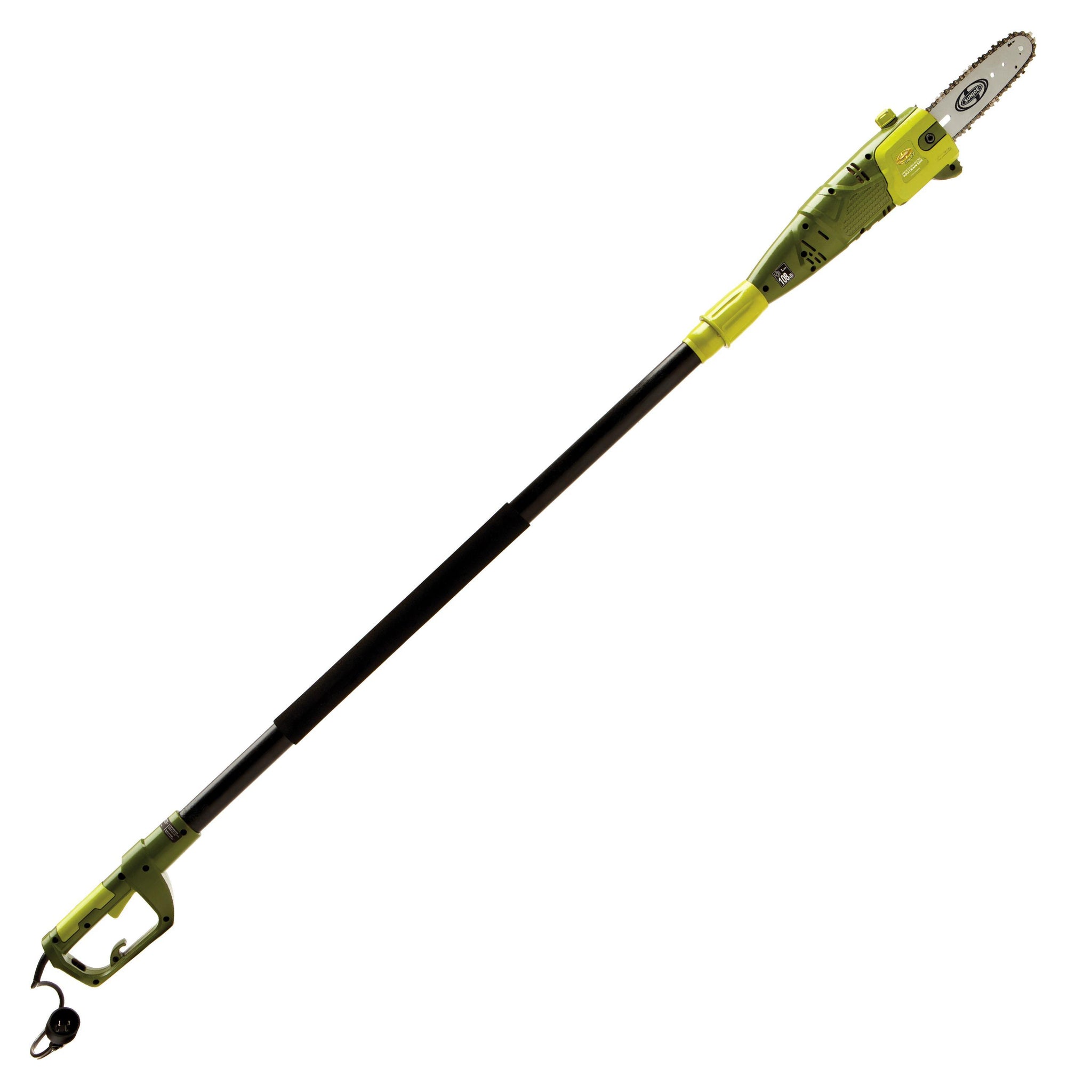 Powered by a 6.5-amp motor, the SWJ800E-RM can handle the most stubborn tree limbs up to 7.5-inches thick. This pole chain saw features an 8-inch Oregon bar and chain with a self-tension mechanism. It also has a handy auto-oiler that keeps the bar and chain fully lubricated during use.