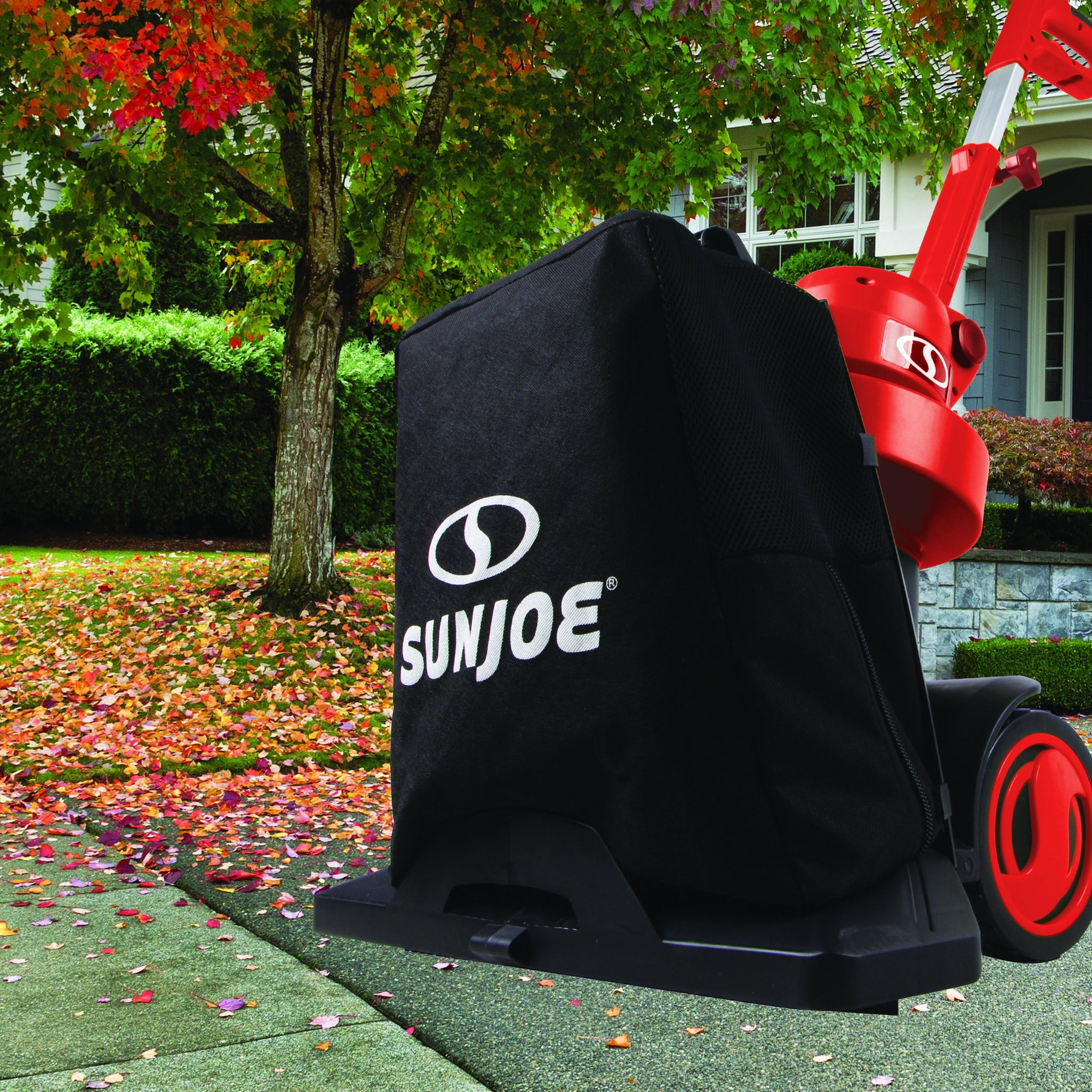 MAKE CLEANUP A BREEZE!  Sun Joe’s innovative Electric Blower Vacuum Mulcher delivers the power and performance you need to quickly rid your yard of leaves, dirt and debris. SBJ802E-RED-RM's robust 13.5-amp motor provides maximum suction, ideal for cleaning the porch, patio, garage or workshop. No need to rake leaves into piles - simply vacuum your yard, driveway, or deck like a rug! The heavy-duty, impact-resistant nylon impeller's superior 10:1 reduction ratio mulches dry leaves, saw dust, packing peanuts, dirt and debris into the 8-gallon collection bag as it cleans, leaving your yard spotless. The versatile 3-in-1 tool quickly converts back to blower mode with a top windspeed of 165 MPH, with the quick flick of a switch, to sweep away fine dust and debris. Rugged, easy-glide wheels are ideal for outdoor surfaces, and the adjustable handle provides a secure, comfortable working height, tailored to each user.