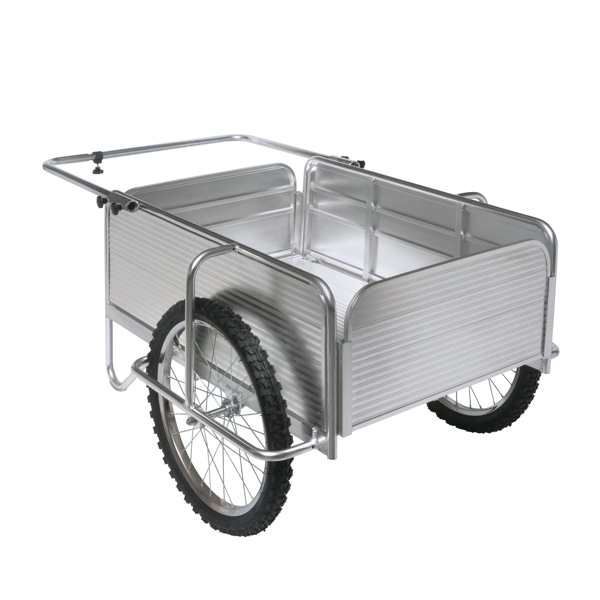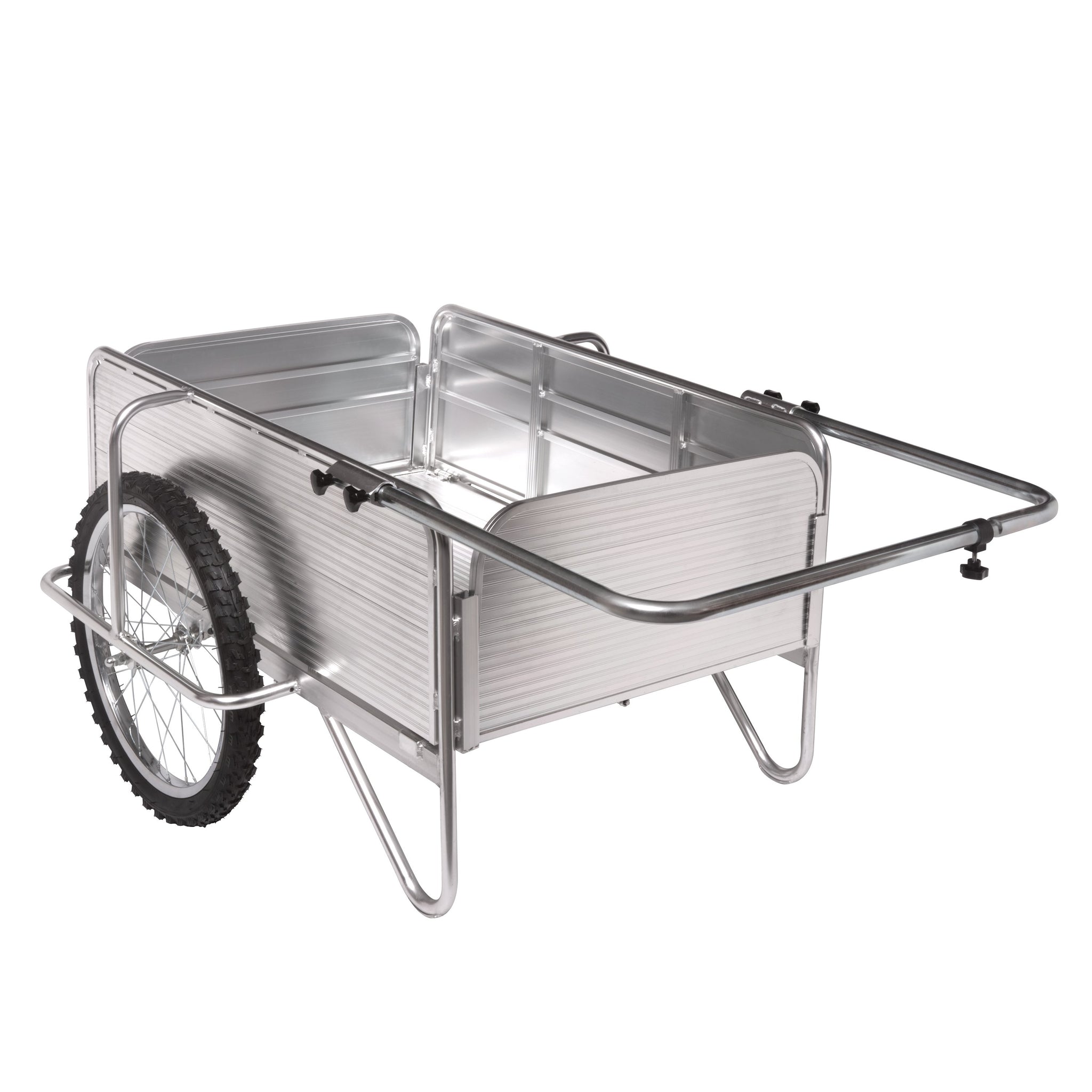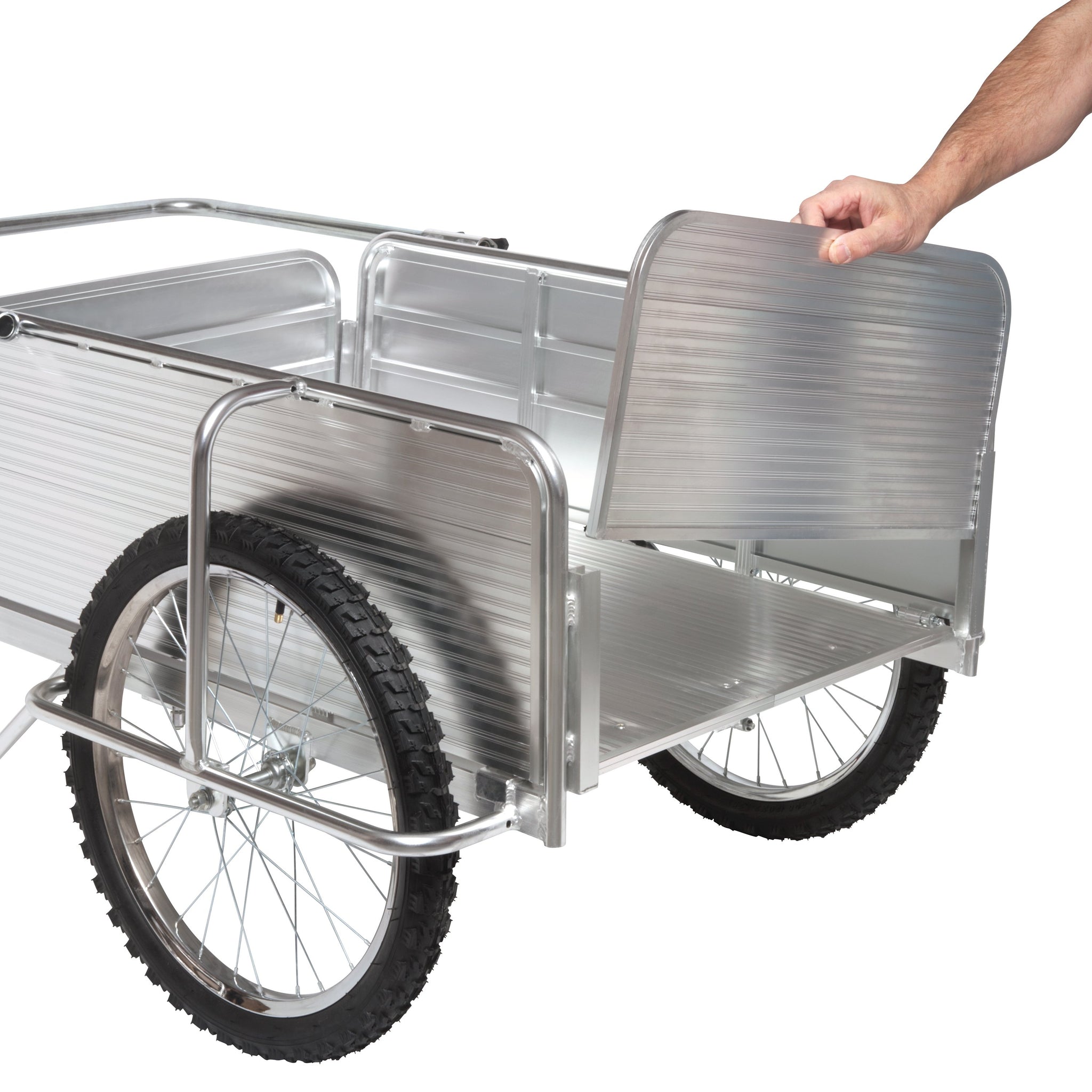 GIVE YOUR GREEN THUMB A HELPING HAND. Make light work of heavy loads around your yard + garden with the Aluminum Garden Utility Cart from SUN JOE. Store and transport tools and trimmings, pots and plants, dirt, fertilizer and other garden gear with ease! The durable, solid aluminum 7.5 cubic ft design carries up to 330 lbs in a single load, taking the strain out of tough-to-do garden tasks. SUN JOE’s oversized 20” pneumatic spoke bicycle tires make it simple to balance heavy loads, and traverse irregular terrain. Quickly dump a bunch of wood chips, fertilizer, mulch and garden waste with the removable front and back panel. Plus, the collapsible, space-saving design makes storage a breeze! Put the power of a landscaper’s crew in your cart to lift more and get more work done with less strain and less effort — and Go With Joe®. GET EQUIPPED®.