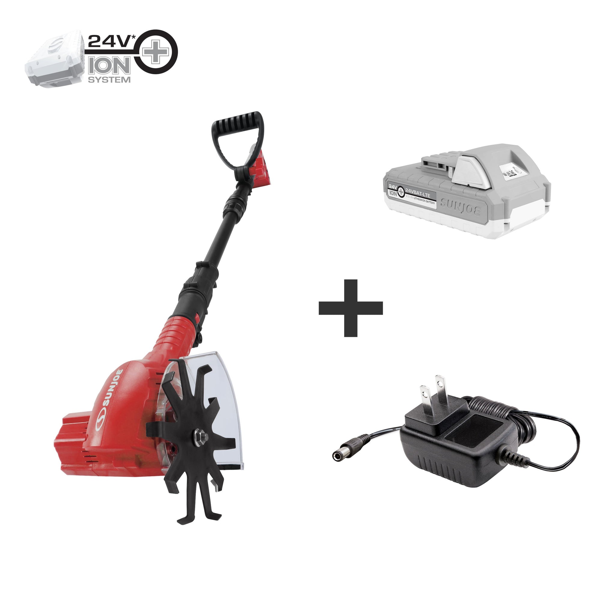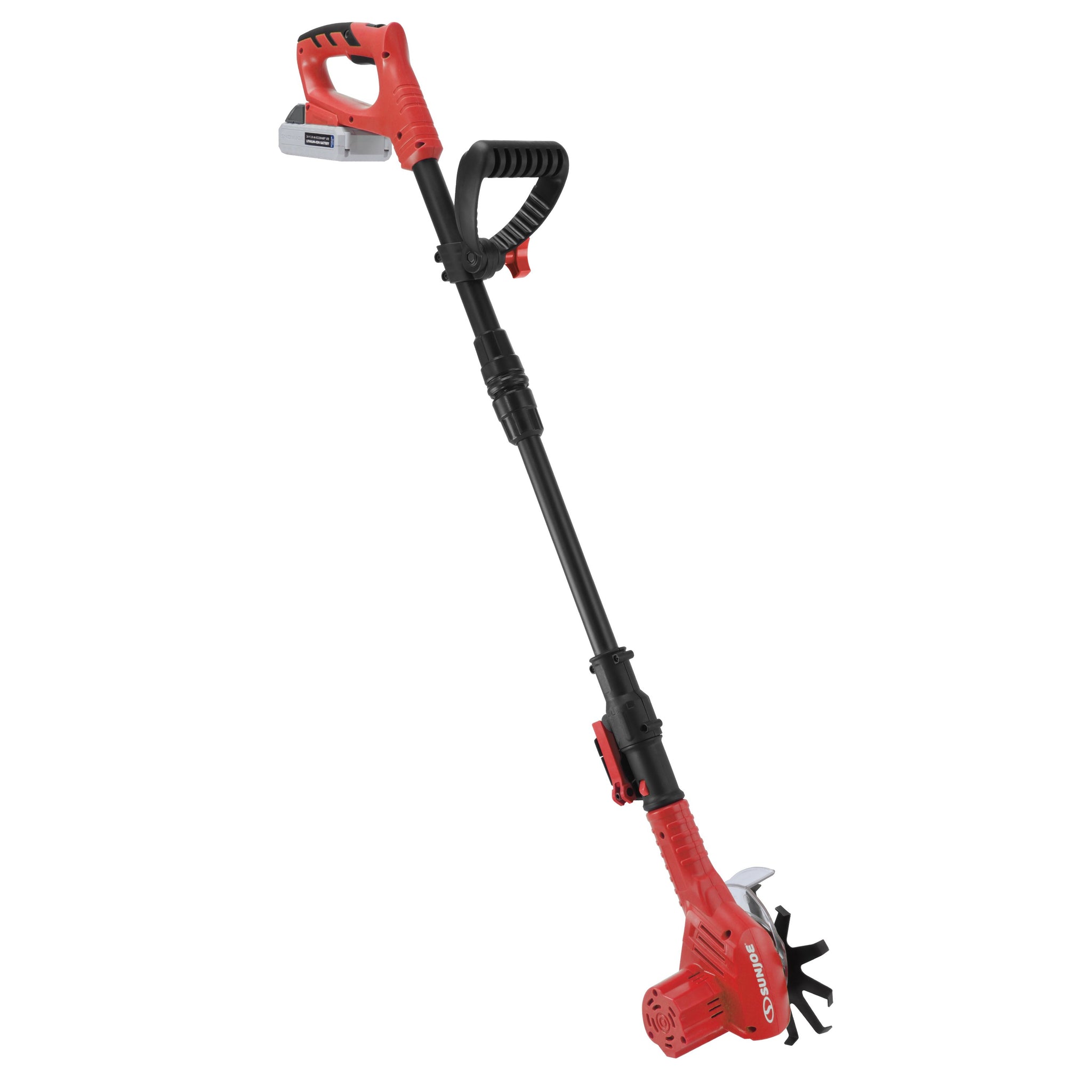 GROUND-BREAKING + BACK-SAVING! Put the back-breaking work of cultivating tough turf behind you and break some ground with the power-packed, 24-Volt Cordless Single Wheel Mini Weeder/Cultivator from SUN JOE. Powered by exclusive ECOSHARP® technology, SJ-WD24V’s 24-volt lithium-ion battery provides up to 60 minutes of rechargeable runtime with no gas, oil, or tune-ups needed! The perfect power weeder, SJ-WD24V effortlessly pulls away weeds and loosens the soil to allow air and moisture to penetrate for healthier roots and plants. Go where no tiller has gone before with the single 6-inch blade! 10 durable, steel tilling tines easily cultivate in tight or cramped quarters — even in between plants — for maximum maneuverability and performance. Ultra-lightweight at under 4.5 pounds, SJ-WD24V features an ergonomic handle and adjustable pole for optimal comfort and control, to take the pain and strain out of weeding and cultivating. So, keep your yard looking its best, with less stress, and Go With Joe: SJ-WD24V 24-Volt Cordless Single Wheel Mini Weeder/Cultivator from SUN JOE®. GET EQUIPPED®.