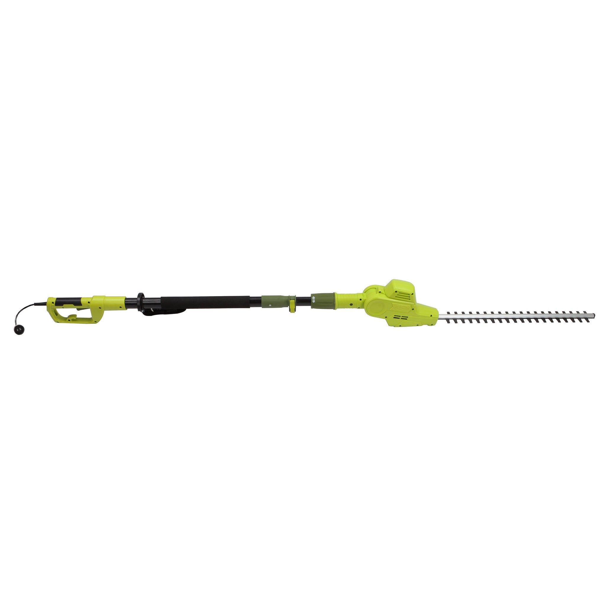 TRULY A CUT ABOVE! Ditch the ladder and shape up the shrubs while you stand safely on solid ground. Take down dead branches and groom your growing hedges overhead in half the time and with twice the efficiency. Maximize your reach while minimizing movement – a durable, 21" hardened steel blade lets you reach higher and sweep further with each pass for perfectly sheared shrubs. A powerful 4-amp motor and multi-angle pivoting head allows for precise trimming of most tall bushes and hedges. Save money on yard maintenance and do the work of a crew while you conveniently clip twigs and small branches beyond your reach. Also great in tight spaces to groom where a traditional hedge clipper simply can’t cut it – between the house and the hedges, alongside the garage, above the toolshed or beneath the bushes. Cut your trimming chores down to size with the handy Sun Joe® Electric Telescoping Pole Hedge Trimmer. The SJH902E carries a full two-year warranty.